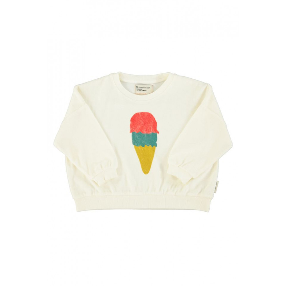 Светр з органічної махрової бавовни з принтами спереду та ззаду. Ребристі нижні краї. Червоні ґудзики на плечі для дитячих розмірів. Прати в холодній воді (макс. 30ºC). Не відбілювати. Не сушити в сушильній машині. Прасувати в прохолодній воді (макс. 110ºC). Не піддавати хімічному чищенню.
