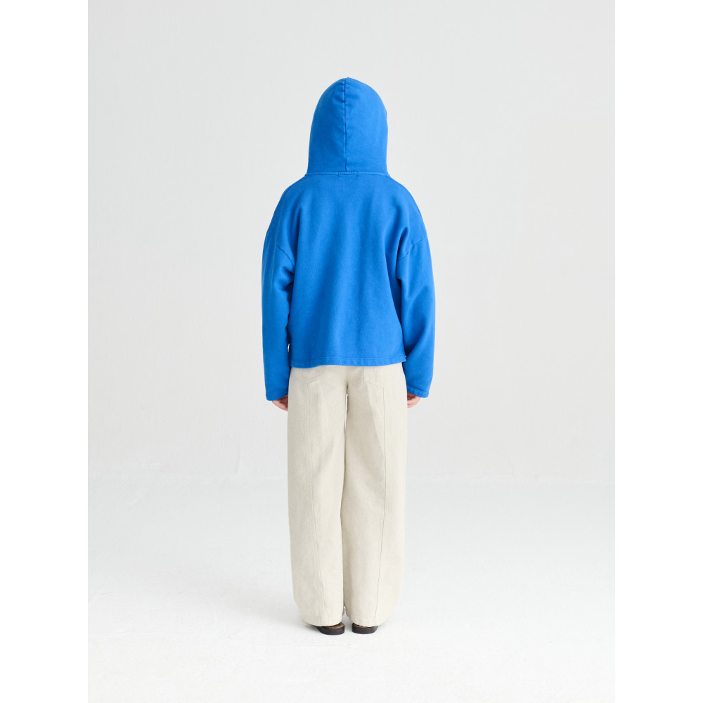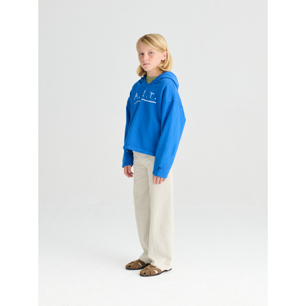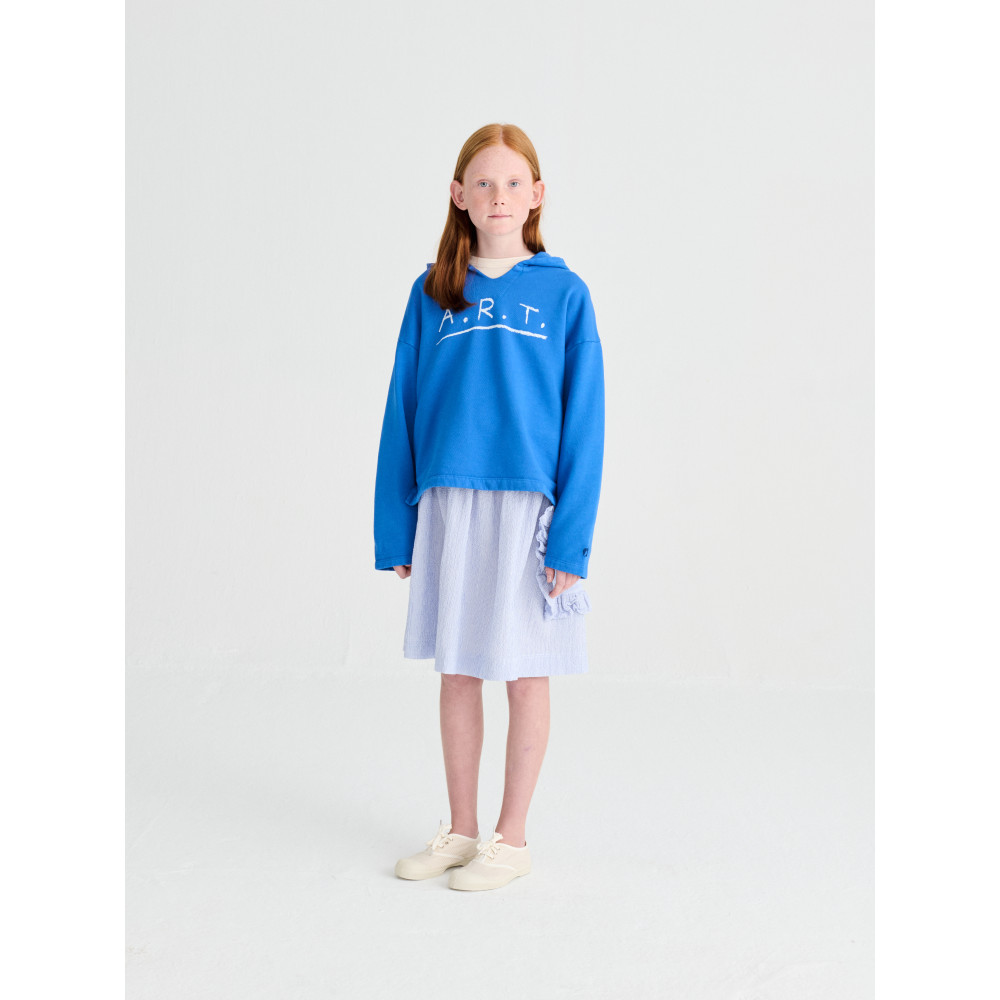 Светр №09 кольору Campanula виготовлений з 98% органічної бавовни та 2% еластану. Цей темно-синій светр має довгі рукави, спущені плечі та наш сезонний принт A.R.T. на грудях. Він має облягаючий крій. Виготовлено в Іспанії.