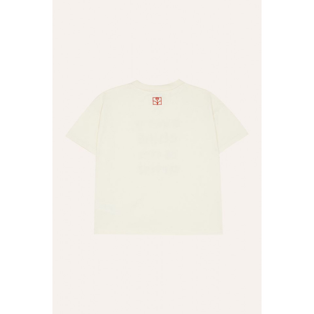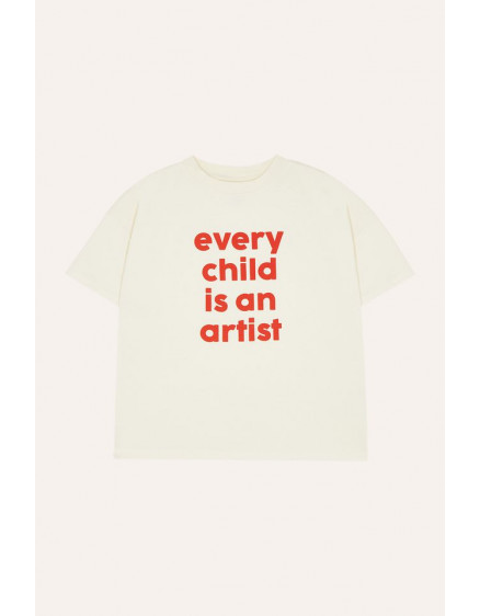 Ця футболка оверсайз та довгого крою прикрашена цитатою «Кожна дитина – художник». З короткими рукавами та круглим вирізом горловини це ідеальний одяг для літа.