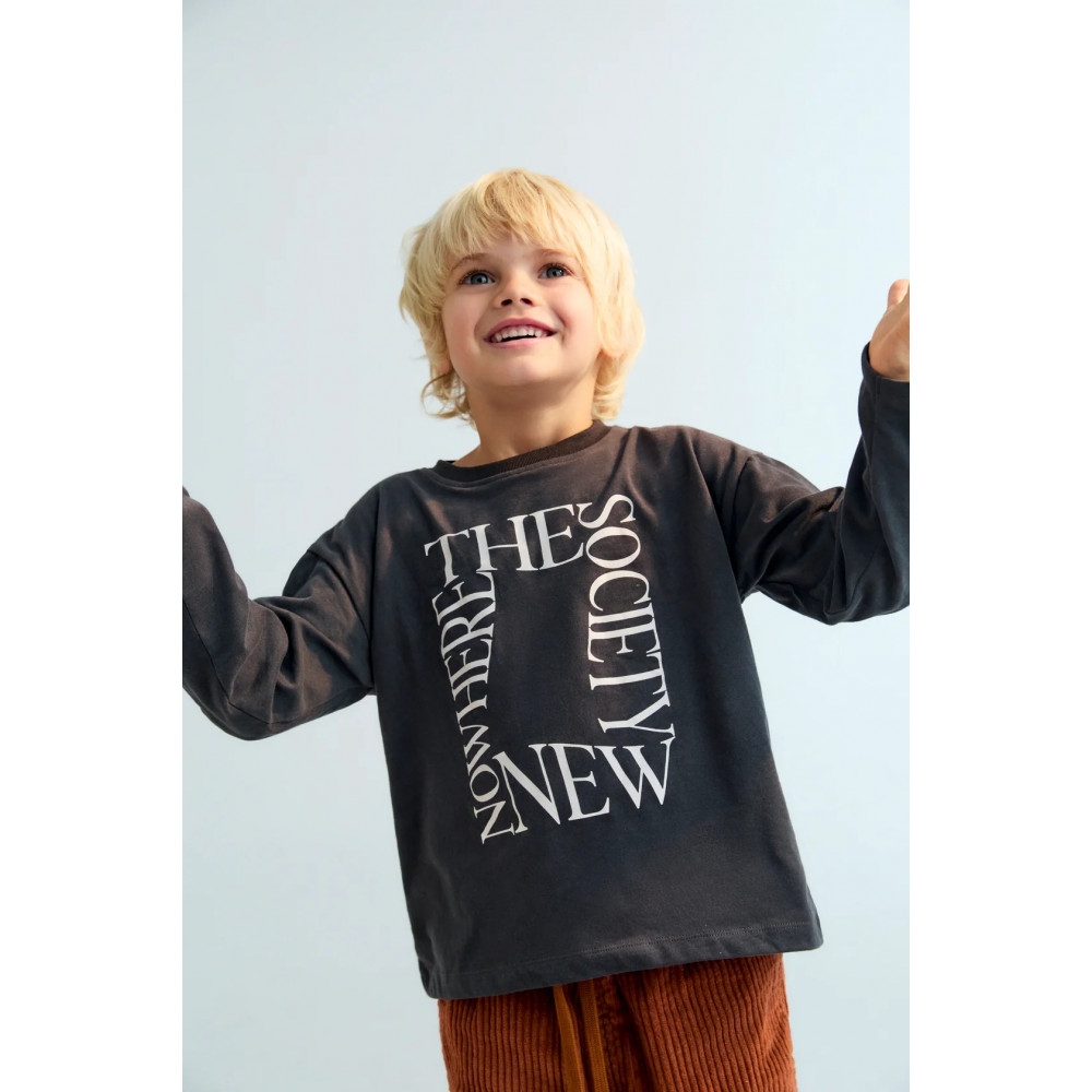 Зручна футболка з довгими рукавами та контрастним принтом спереду. Матована як зсередини, так і зовні для додаткової м'якості, що робить її ідеальною для затишного щоденного носіння.