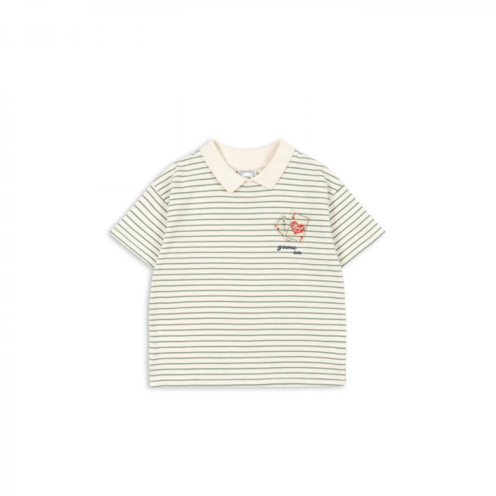 Класична футболка з м'якого трикотажу з органічної бавовни з коміром у рубчик. Розроблений у невимушеному крої зі спущеними плечима та милим принтом карткової гри «Jack of Hearts» спереду, чарівна гра слів, яка ніжно киває сину Розі, Джеку.