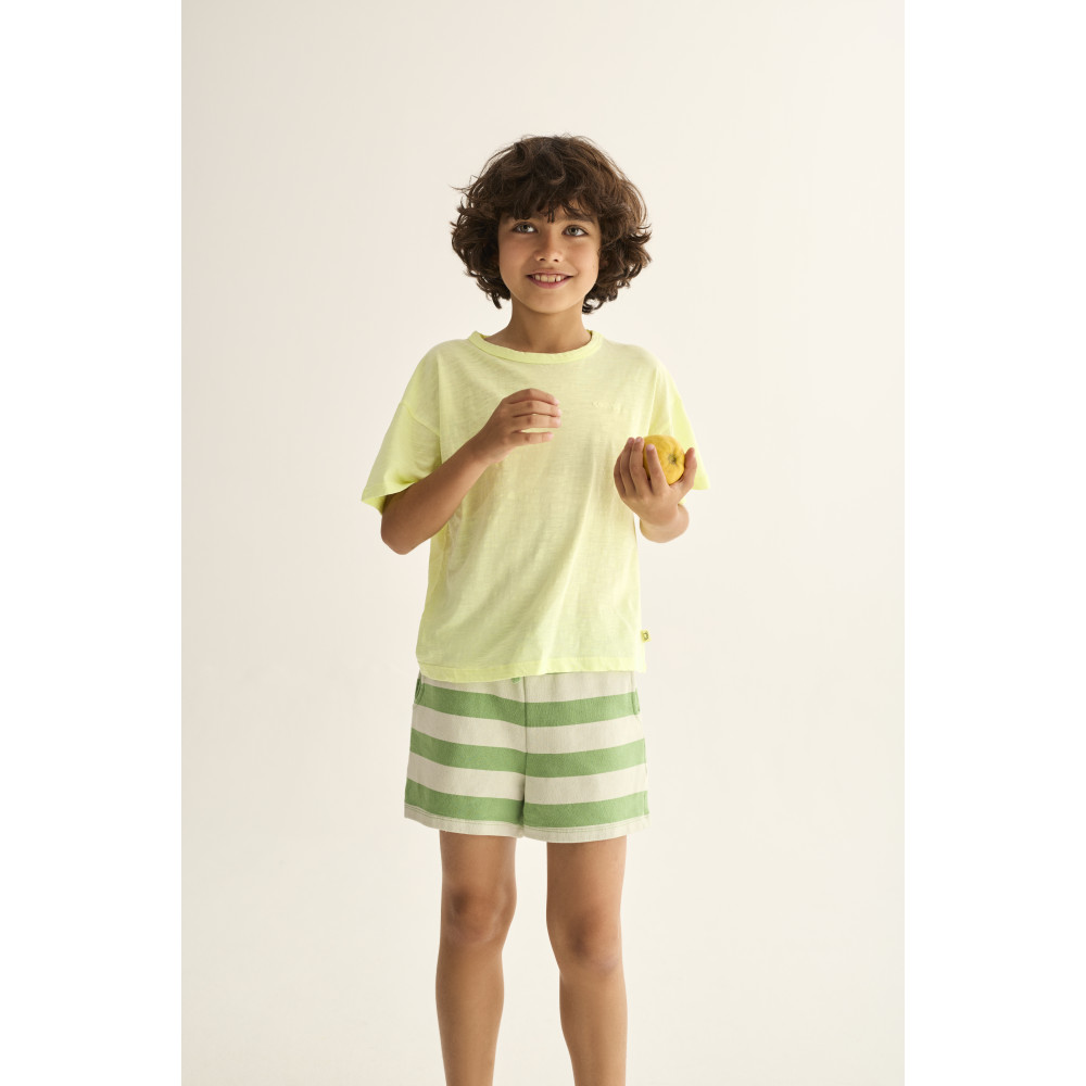 Футболка з дуже легкої бавовни. Круглий виріз горловини та застібка на кнопки на лівому плечі. Короткі рукави. Вишивка "Cozmo" на грудях.