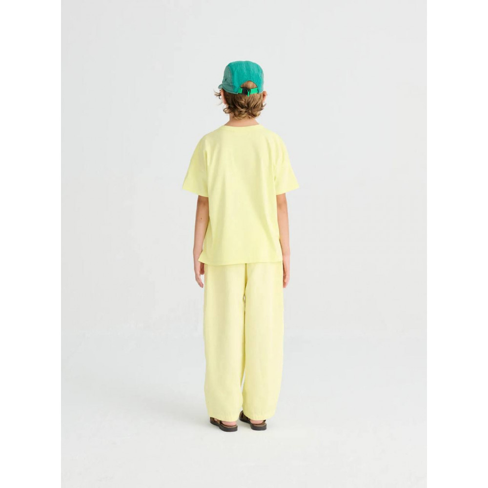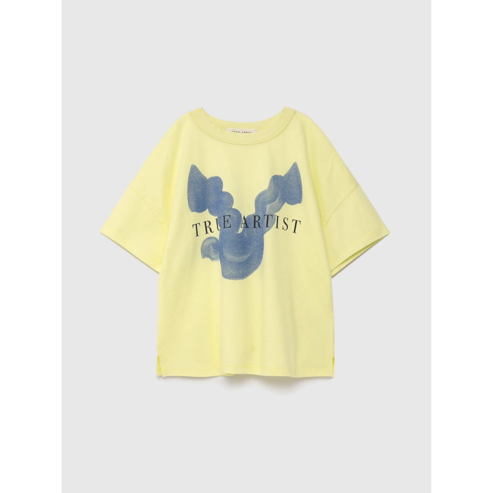 Футболка №01 кольору «Ельфійський жовтий» виготовлена зі 100% органічної бавовни та прикрашена сезонним мотивом птахів спереду. Вона має спущені плечі, круглий виріз горловини та короткі рукави. Має облягаючий крій. Виготовлено в Португалії.