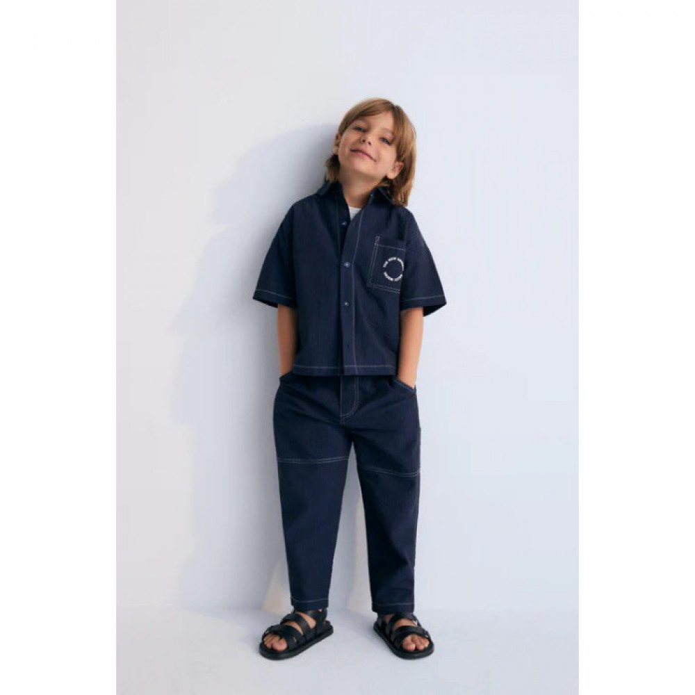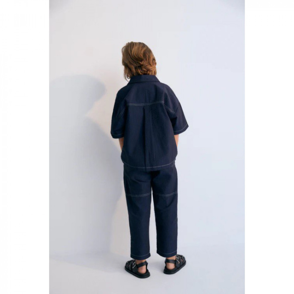 Штани Corinto виготовлені зі 100% бавовни темно-синього сирсукера з контрастними швами для вишуканого дотику. Горизонтальний виріз штанини створює сучас ний привабливий силует, а невидимі застібки зберігають чистий, вишуканий вигляд. Ідеально поєднуючись із сороч кою Corinto в тон, ці штани доповнюють вишуканий і зручний ансамбль. Машинне прання 30º/не відбілювати/сушити в пральній машині при низькій температурі/прасувати при середній температурі/хімчистка, будь-який розчинник, крім трихлоретилену.
