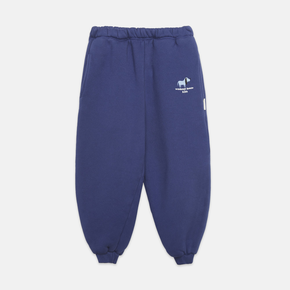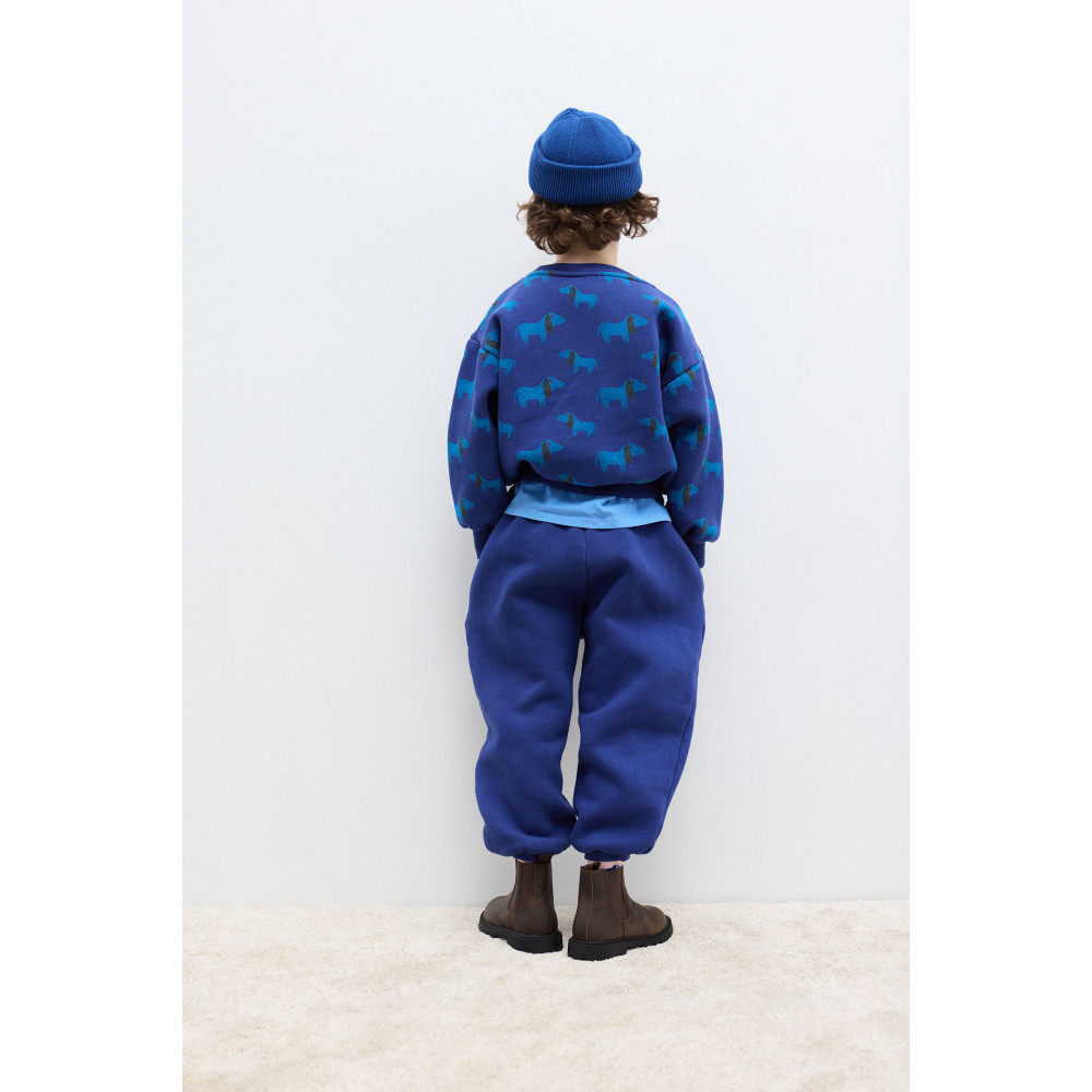 Затишні та грайливі, ці сині спортивні штани виготовлені з м'якого органічного бавовняного флісу для тепла та комфорту. Маючи еластичний пояс для зручного облягання та милу вишиту деталь у вигляді цуценяти на штанині, вони ідеально підходять для щоденних пригод та спокійних днів вдома.