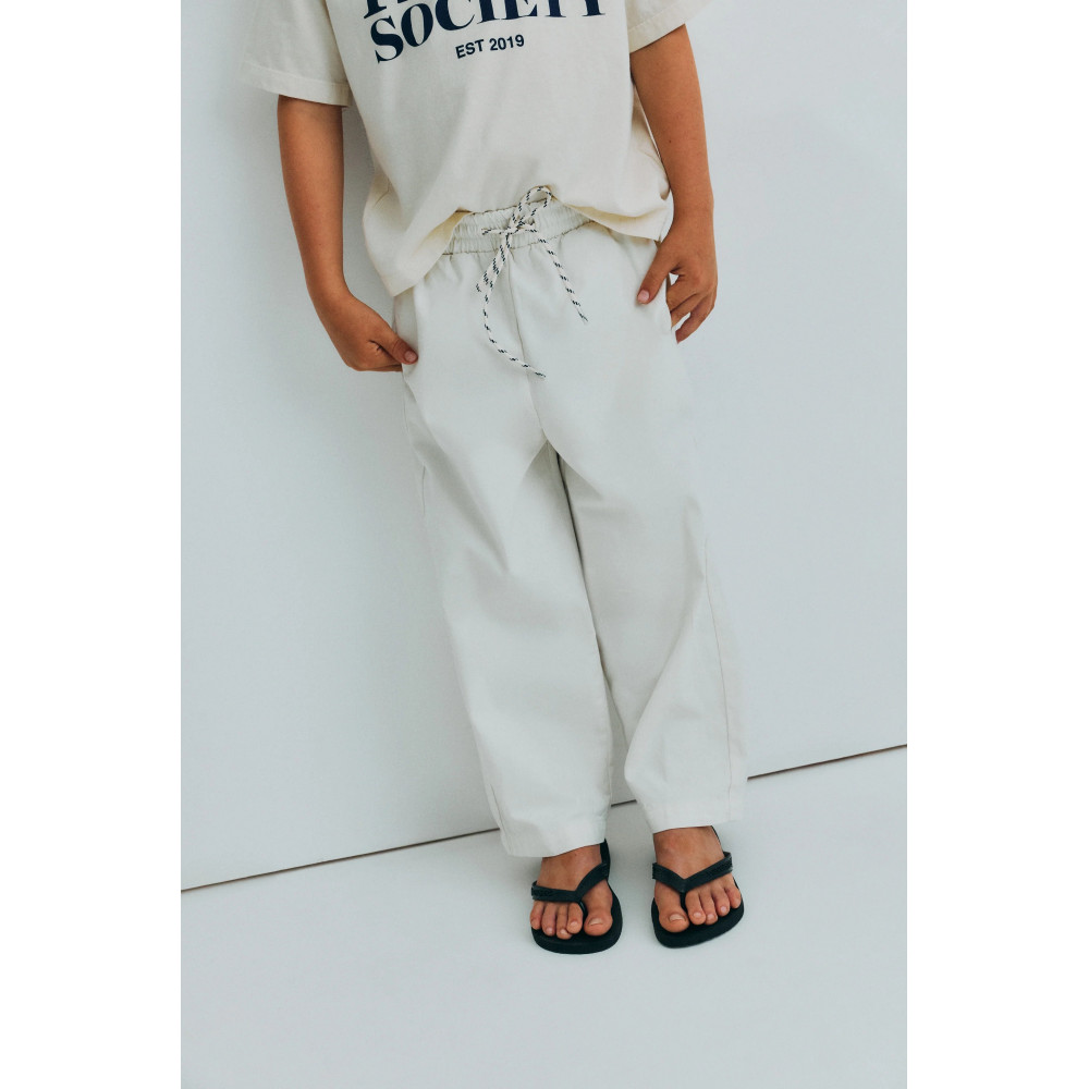 М'які бавовняні ткані штани класичного стилю з боковими та задніми кишенями, регульованим поясом зі шнурком у тон та контрастними цятками, а також фірмовою вишивкою на спині. Виготовлено в Португалії.
