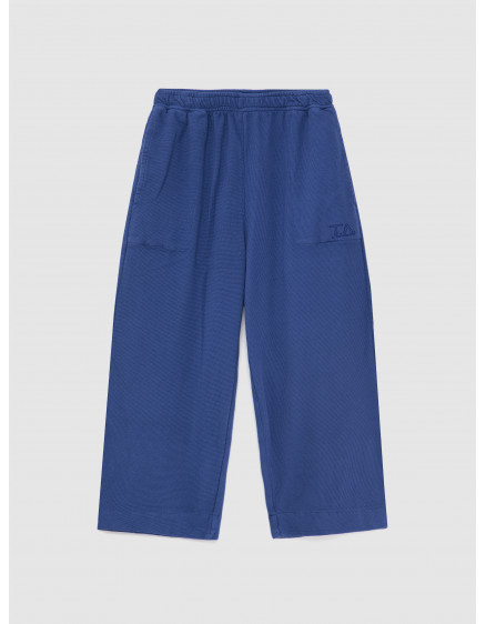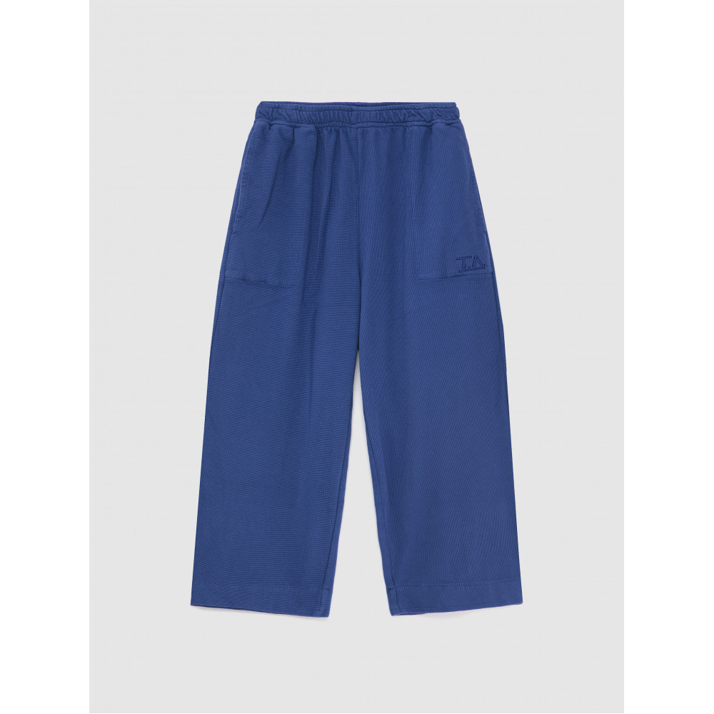 Спортивні штани №08 кольору Lapis Blue виготовлені зі 100% органічної текстурованої бавовни та прикрашені нашим сезонним логотипом TA, вишитим на кишені. Ці спортивні штани мають бічні кишені та еластичний пояс. Вони мають вільний крій. Виготовлено в Іспанії.