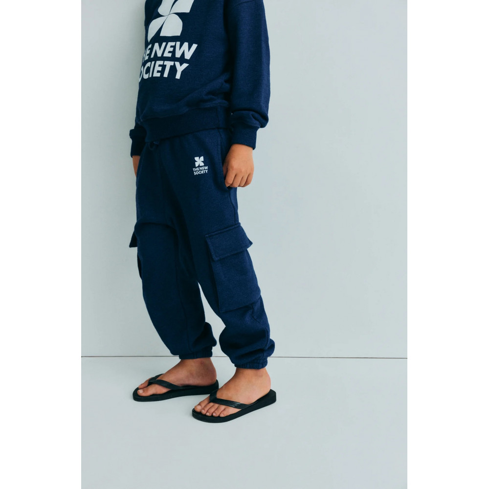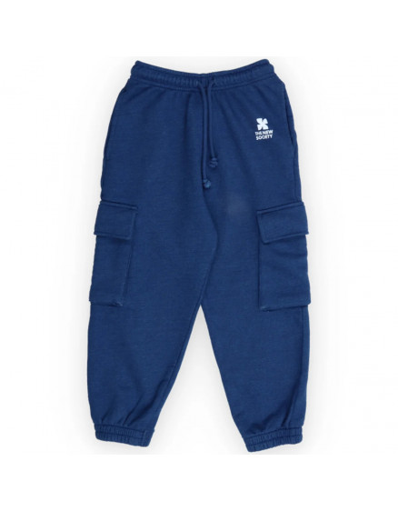 Джогінгові штани з логотипом TNS від The New Society. Джинсові штани-карго з переробленої бавовни. Мають кишені карго на штанинах та бічні кишені, регульований пояс зі шнурком та еластичні манжети. Мають фірмовий принт спереду.