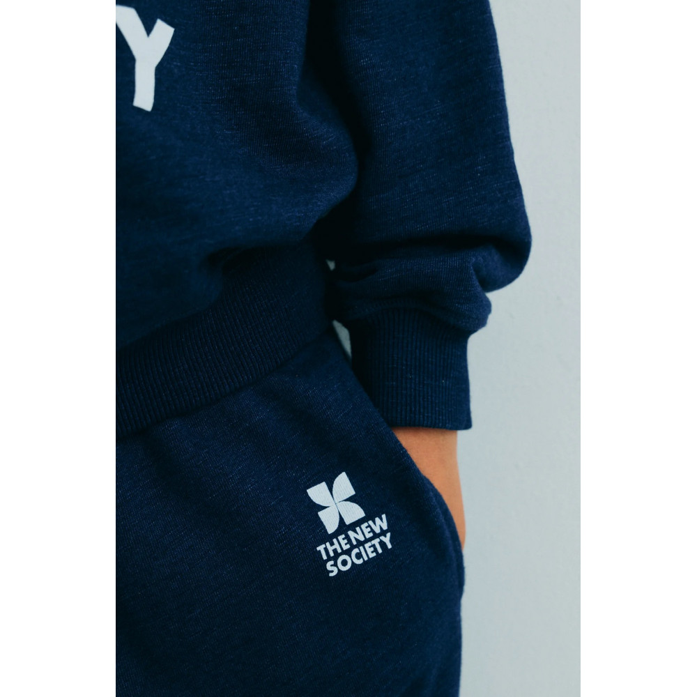 Джогінгові штани з логотипом TNS від The New Society. Джинсові штани-карго з переробленої бавовни. Мають кишені карго на штанинах та бічні кишені, регульований пояс зі шнурком та еластичні манжети. Мають фірмовий принт спереду.