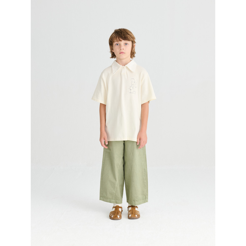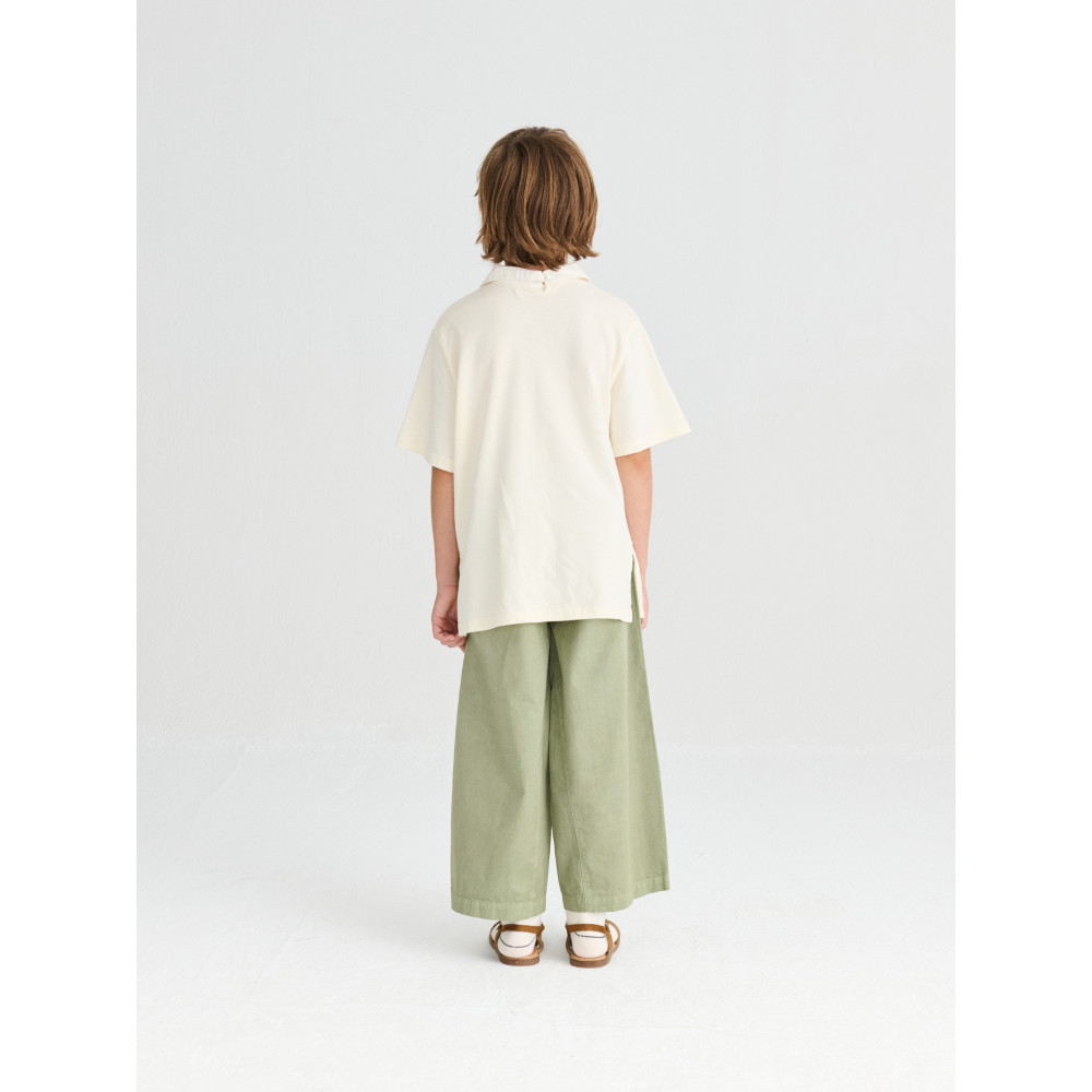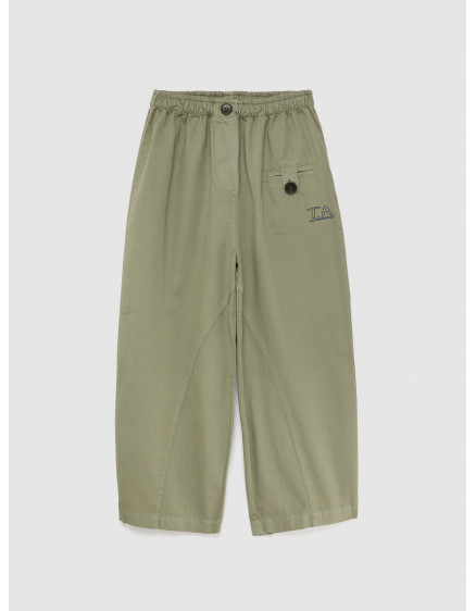 Штани №15 кольору Sage виготовлені зі 100% органічної бавовни. Ці ткані штани мають еластичну стрічку та наш сезонний принт T.A. спереду. Вони мають фальшиву застібку на ґудзики та ширинку, а також кишеню для монет на ґудзиках. Вони мають вільний крій. Виготовлено в Іспанії.