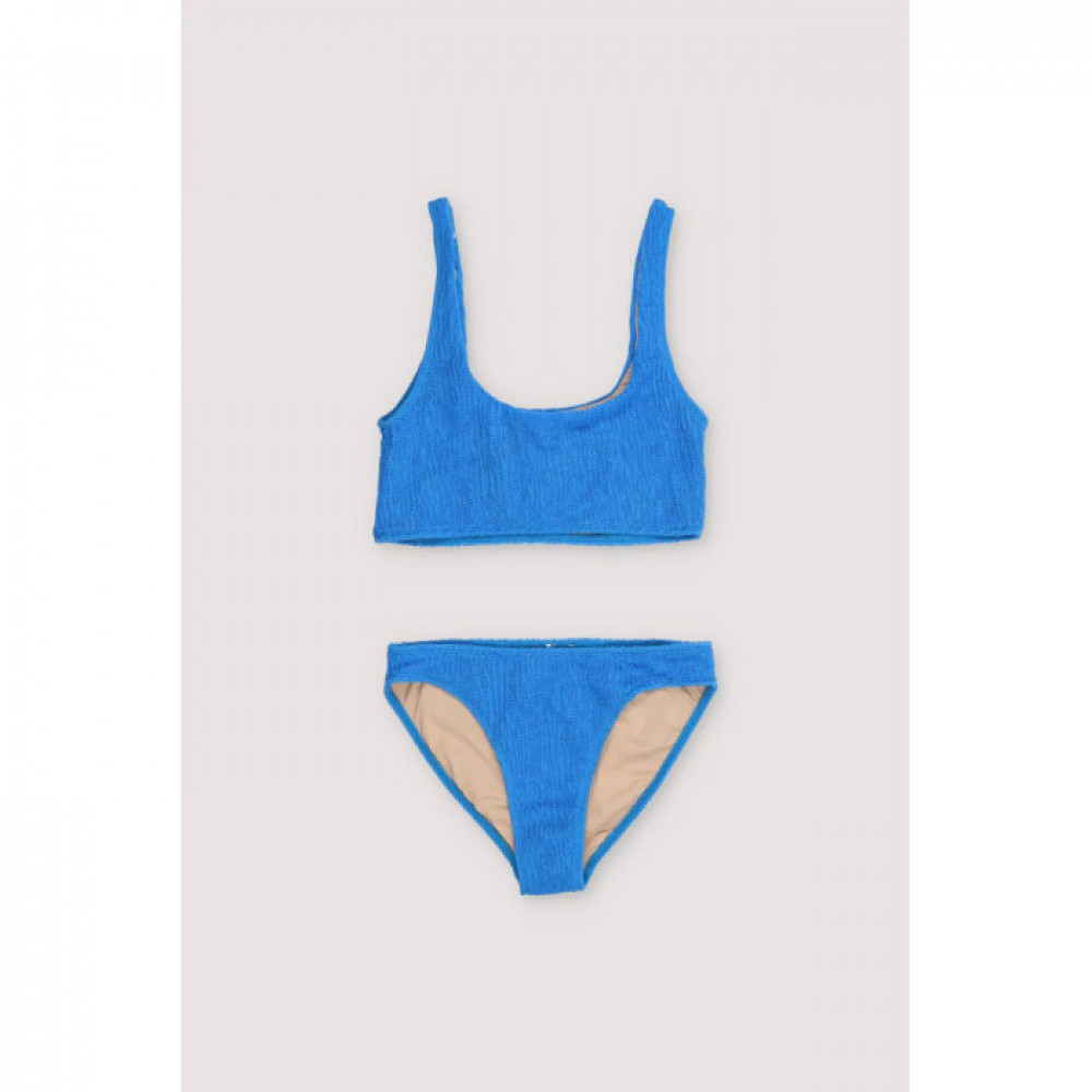 This bikini, crafted from a structured fabric, offers a sleek and modern silhouette. Designed for versatility and comfort, it provides the perfect fit for both sunbathing and swimming. Pair it with a lightweight cover-up or your favorite accessories for a complete beach-ready style. Made in Portugal.