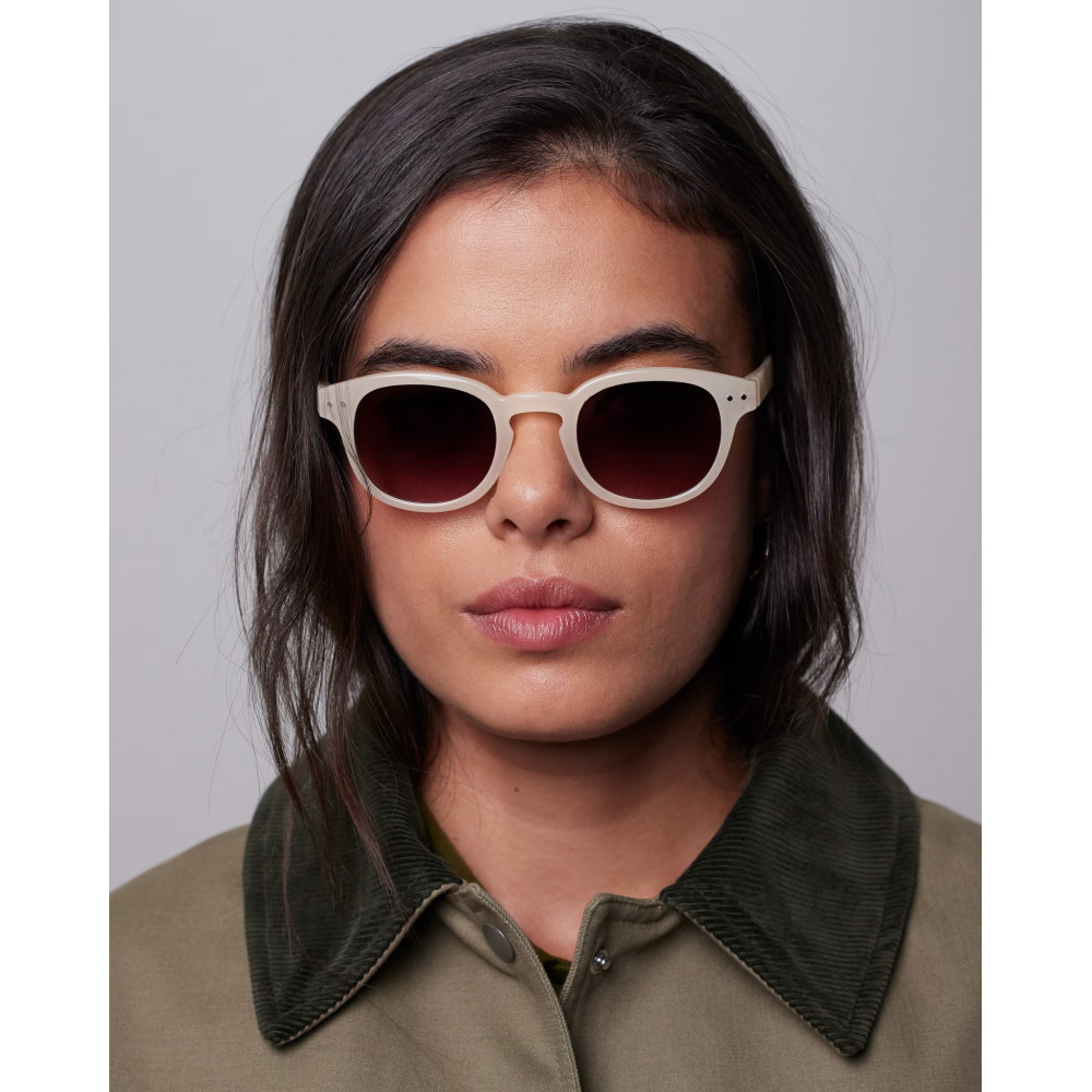 Show off a chic and sun-kissed style with the SUN C Vintage Cream sunglasses. Their cream-colored frame with a glossy finish captures the essence of summer and the timeless elegance of the French Riviera. The violet-tinted lenses add a subtle and refined touch for an effortlessly chic look. The essential accessory to shine in the sun with style and protect your eyes. Sunglasses - Shape #C: square, bold, chic - Crystal frame, shiny and bio-sourced - 100% UV protection Category 3 - Unisex and universal style - Storage pouch included in the box