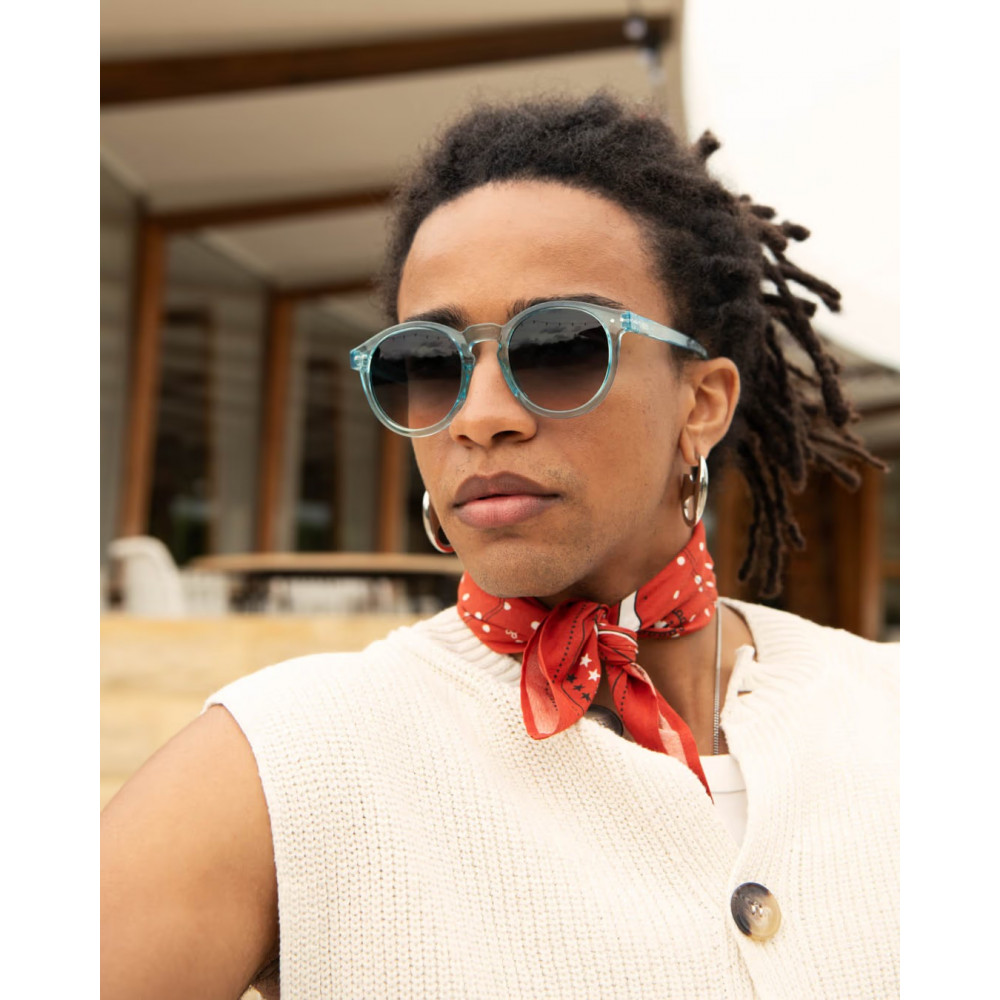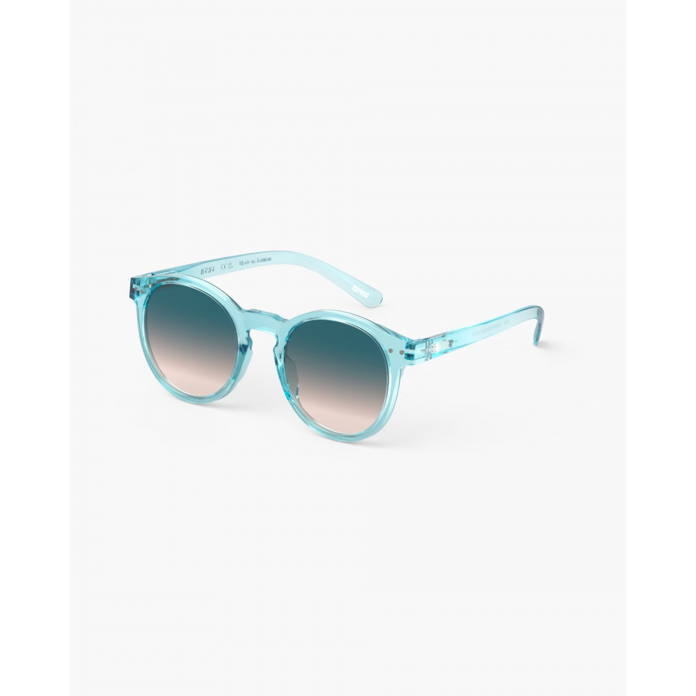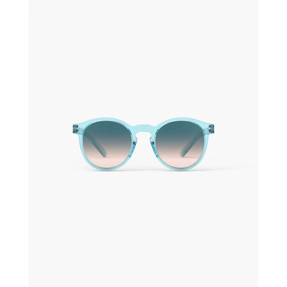 These #M Turquoise Stone sunglasses embody travel and turquoise waters. Their glossy frame, in a vibrant mineral hue, features an oversized, round silhouette. Their gradient blue lenses add depth to your gaze, inviting you to explore new horizons.
