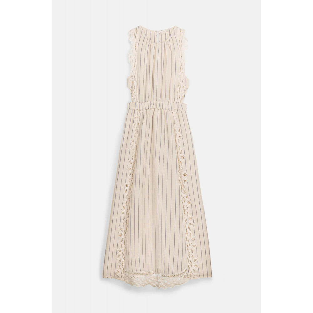 Striped long dress in cotton and linen. Lace details. Zip opening below the waist, at the back.