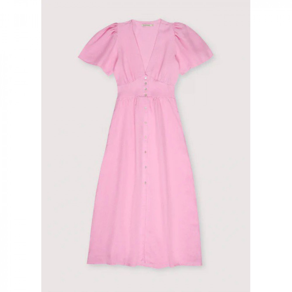 Our bestselling Hera Woman Dress is now available in stunning solid colors, crafted from 100% linen for a soft, breathable fit. This flattering dress features a V-neckline, short sleeves with gentle shoulder gathering, and a row of center front buttons, combining classic design with modern elegance. Available in three versatile colors—navy, hibiscus, and palm—this dress is perfect for effortless styling, whether you're dressing up for an event or enjoying a casual day out. This dress is a must-have addition to your wardrobe, embodying the perfect balance of comfort and sophistication.