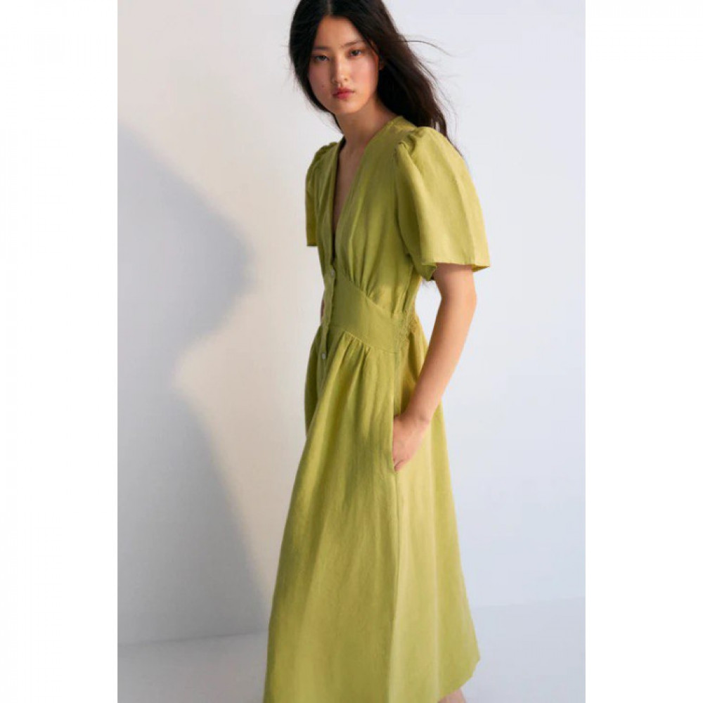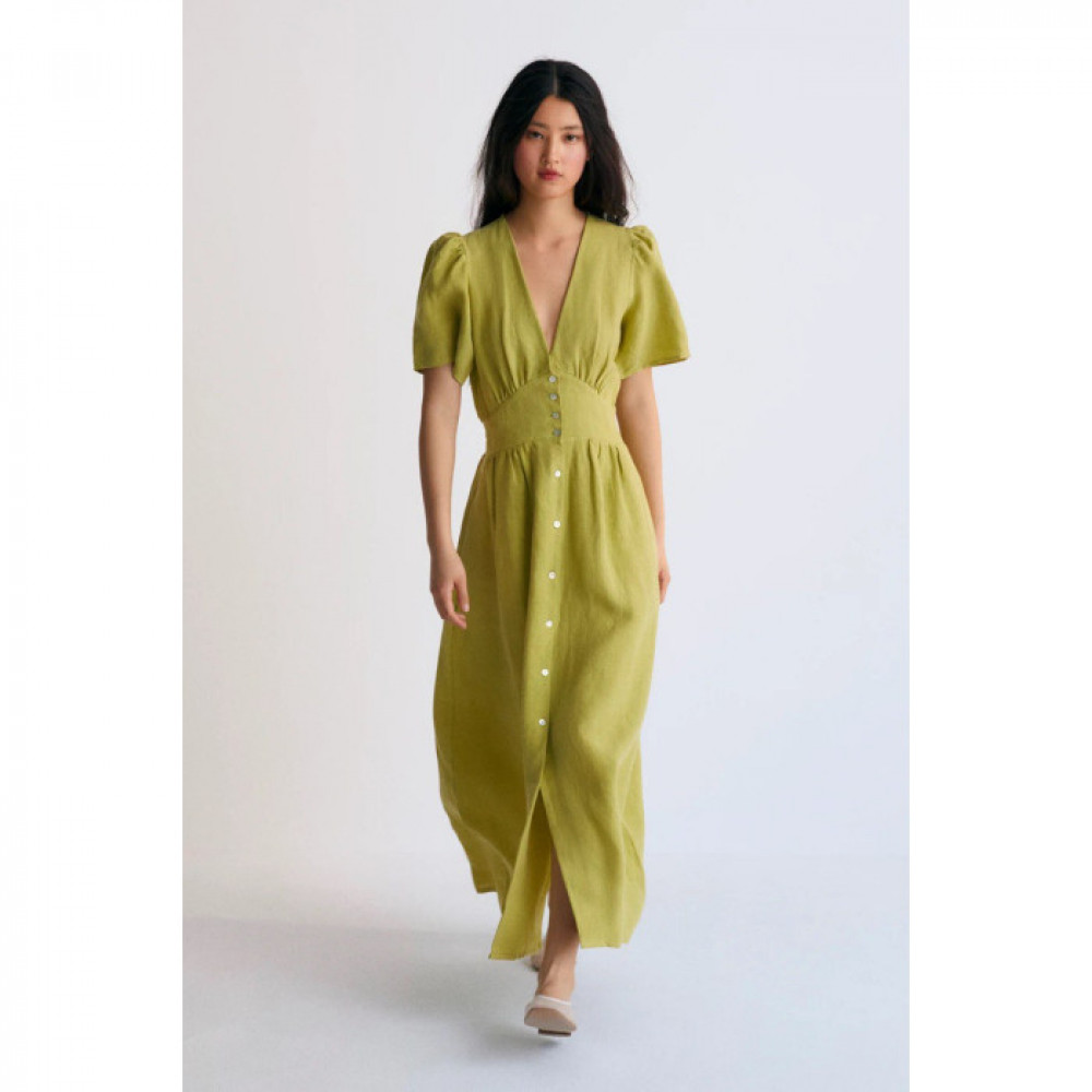 Our bestselling Hera Woman Dress is now available in stunning solid colors, crafted from 100% linen for a soft, breathable fit. This flattering dress features a V-neckline, short sleeves with gentle shoulder gathering, and a row of center front buttons, combining classic design with modern elegance. Available in three versatile colors—navy, hibiscus, and palm—this dress is perfect for effortless styling, whether you're dressing up for an event or enjoying a casual day out. This dress is a must-have addition to your wardrobe, embodying the perfect balance of comfort and sophistication.
