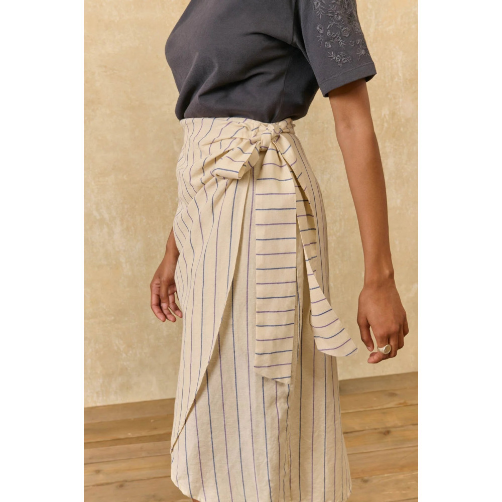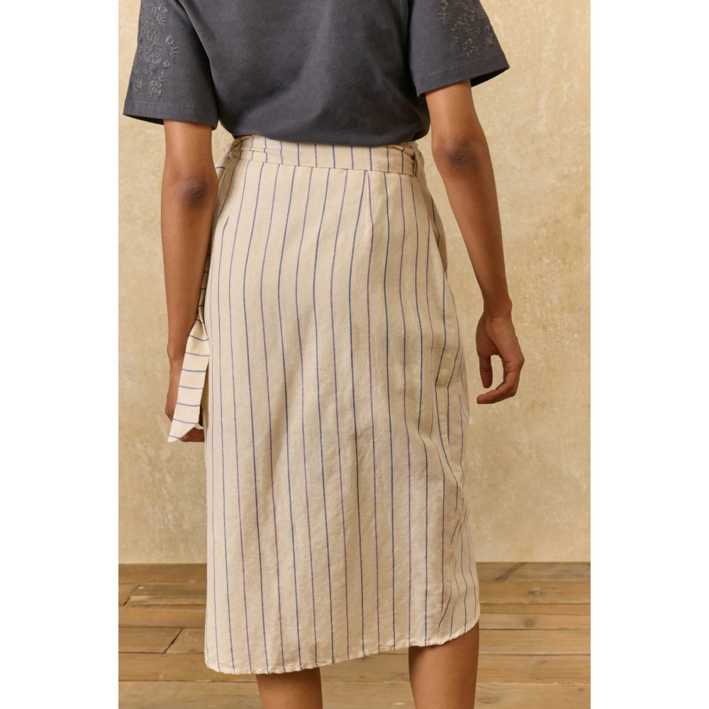 Midi-length striped skirt in cotton and yarn-dyed linen.