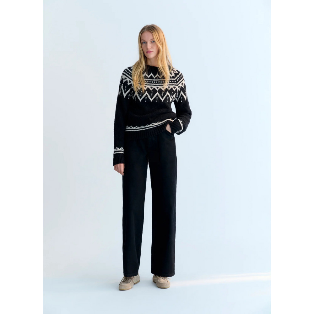 Our women's wide-leg denim pants, in a classic black hue for a versatile and timeless style. Model: Height 176 cm, wearing size S Made in Portugal