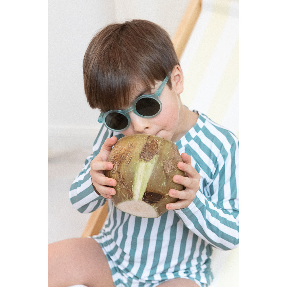 Get your junior ready for days of sunshine with the retro-inspired round DARLA sunglasses. The sunglasses have TAC polarised lenses and a lightweight frame made of durable, recycled polycarbonate. Available in various finishes and colours to match your little one's unique look. Junior (4-10 years) sunglasses with TAC polarised lenses The round shape gives a playful and retro look Made from GRS-certified recycled polycarbonate 100% UV category 3 sunglasses (UV400) Spring hinges for maximum flexibility and comfort A cool accessory for sunny days Width (Cm) 13; Length (Cm) 14