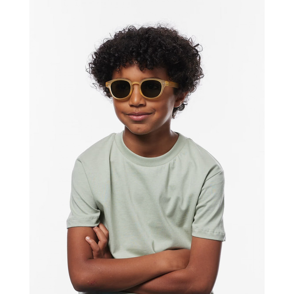 - Suitable for children aged 7 to 11 years - Head circumference: 52-55 cm - 100% UV protection with category 3 polarized lenses - Grey sun lenses for optimal color accuracy - Bio-based, lightweight, and durable material - Soft Touch finish: a pleasant, peach-skin feel - Retro square shape #c - playful, easy to wear, and full of character - Unisex and universal design - Storage pouch included