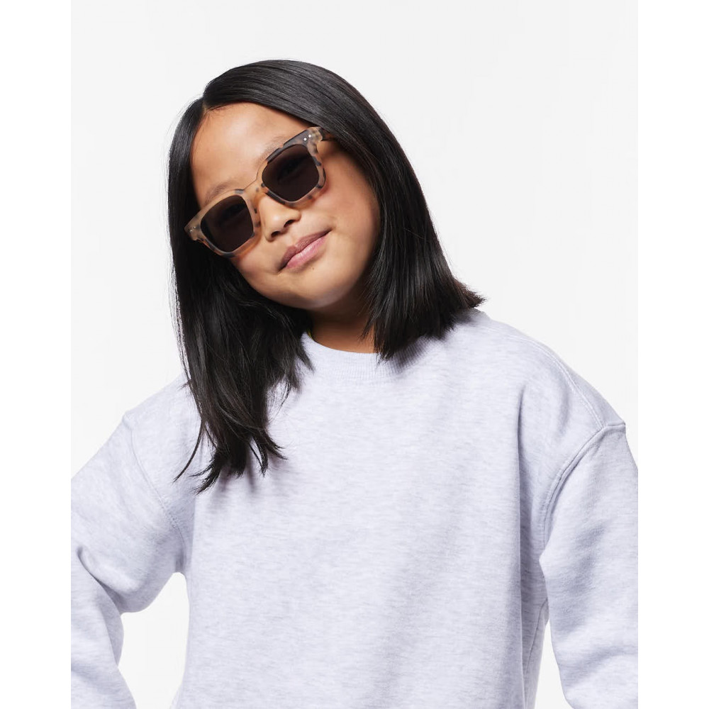 - Suitable for children aged 7 to 11 years - Head circumference: 52-55 cm - 100% UV protection with category 3 polarized lenses - Grey sun lenses for optimal color accuracy - Bio-based, lightweight, and durable material - Soft Touch finish: a pleasant, peach-skin feel - Mini rectangular shape, inspired by our adult #ROAD model, for matching looks - Unisex and universal design - Storage pouch included