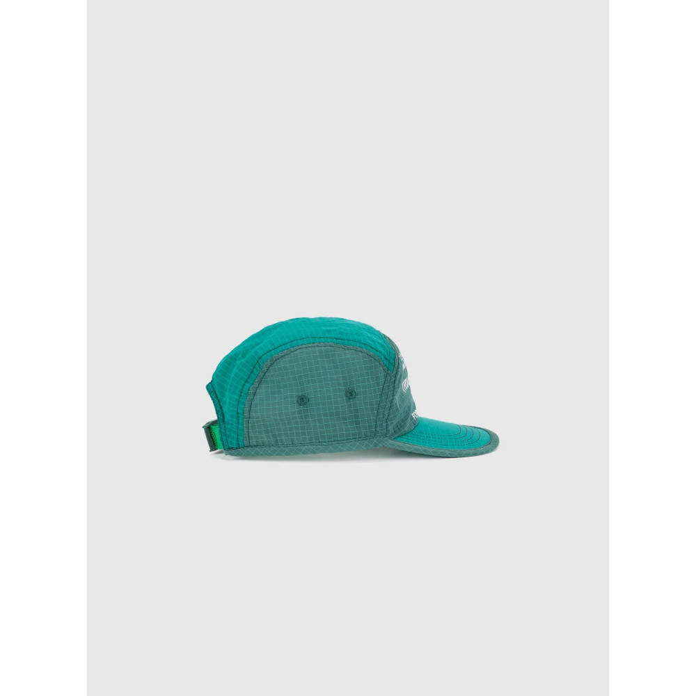 Cap nº03 in Jade Green is made of 100% recycled polyamide and has our brand slogan printed on the front. This tone-to-tone color block cap is designed with adjustable closing at the back.