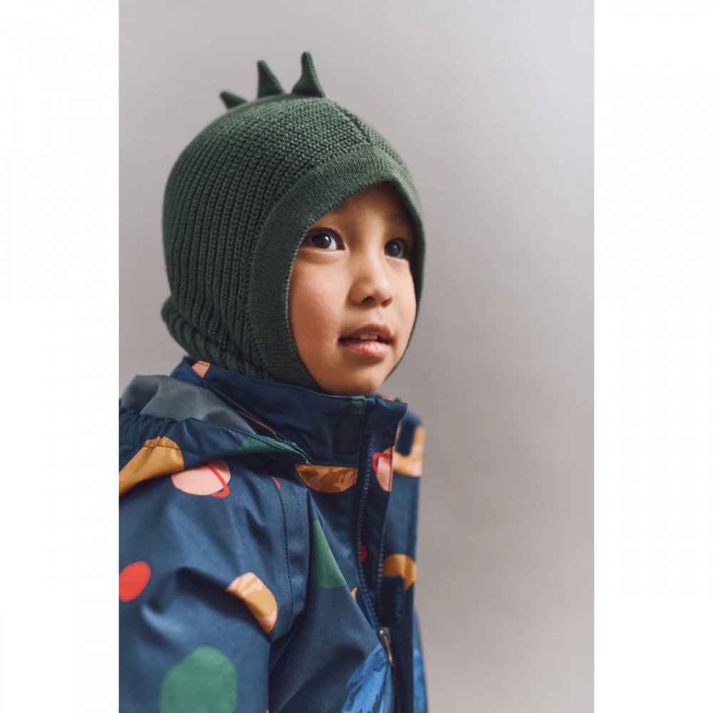 The rib-knitted HANIBAL balaclava has a snug and comfortable fit that keeps heads and necks warm in colder weather. Made from soft, organic cotton and features cool dinosaur details for that extra playful touch. Super soft knit balaclava with cool dinosaur details Made from 100% GOTS-certified organic cotton Itch-free and breathable Wide rib hem around the face and neck opening ensures a snug fit Keeps your child warm around the head and neck A must-have for playtime outside during the autumn and winter