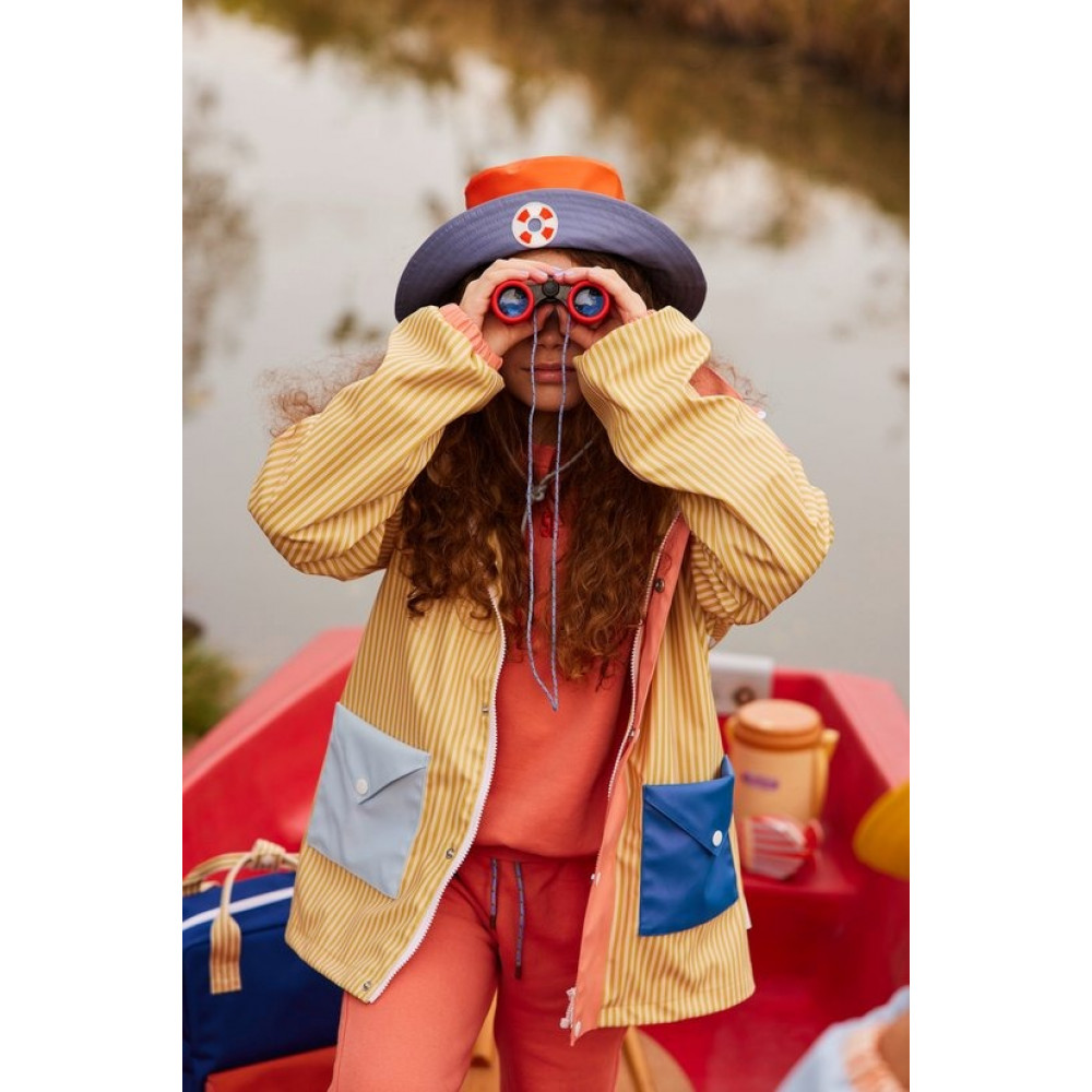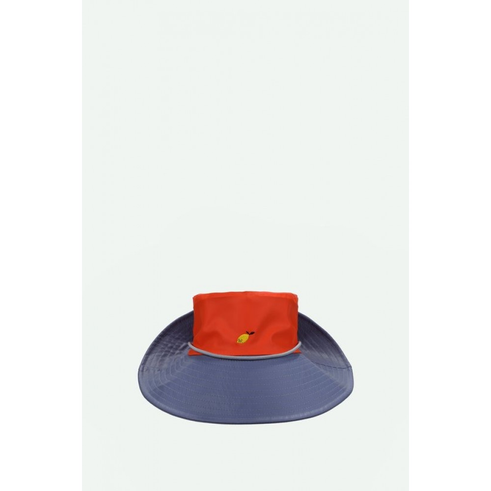 Stylish and protective at the same time. Our rain hat with two vibrant colors and a cord to keep it in place.