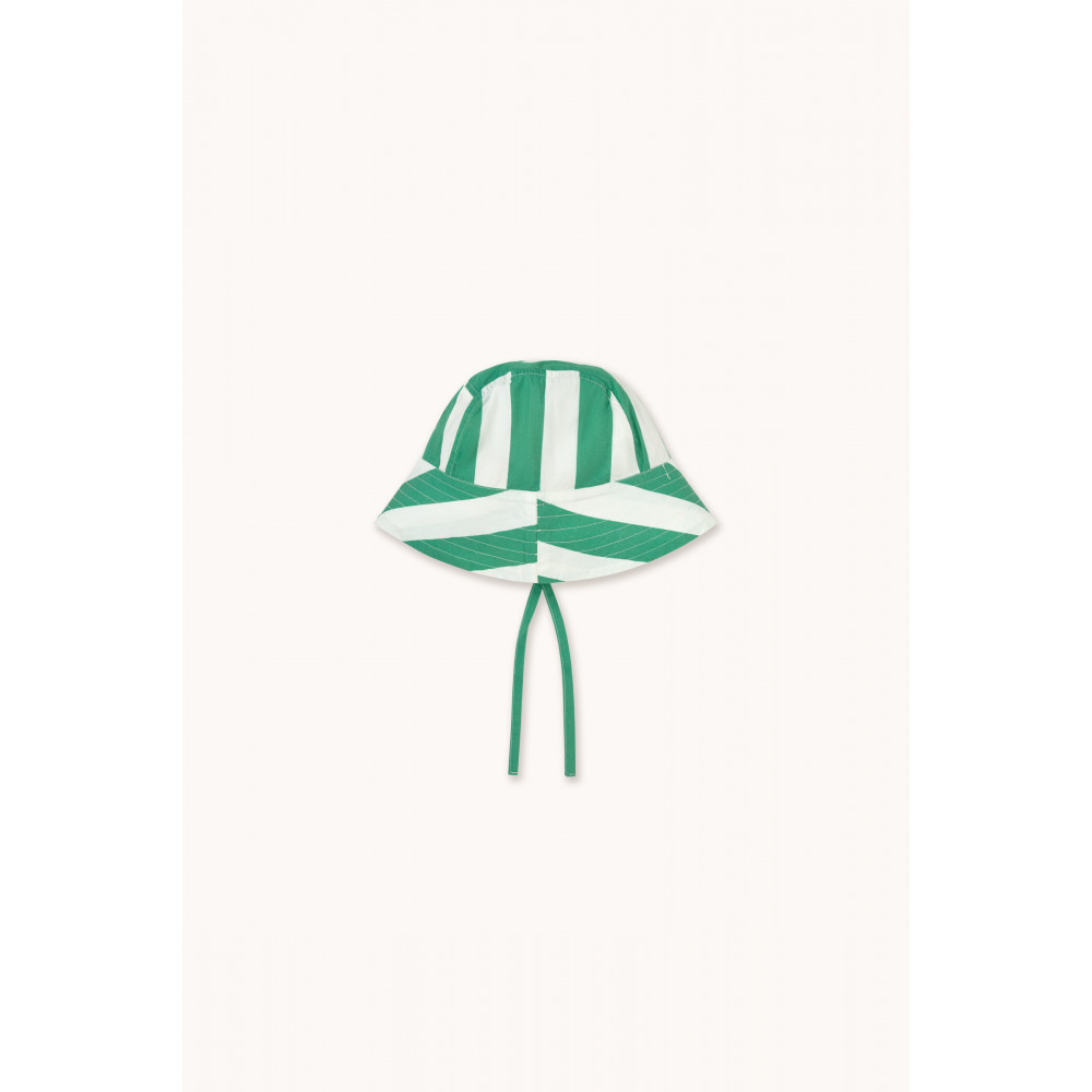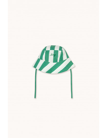 A timeless style with an original twist. This bucket hat featuring the Emerald Stripes print is crafted from playful Crispy Poplin fabric. It includes a small woven label with the embroidered logo on the front, adding that signature Tiny touch. Perfect for sunny days, this hat perfectly blends classic style, personality, and functionality.