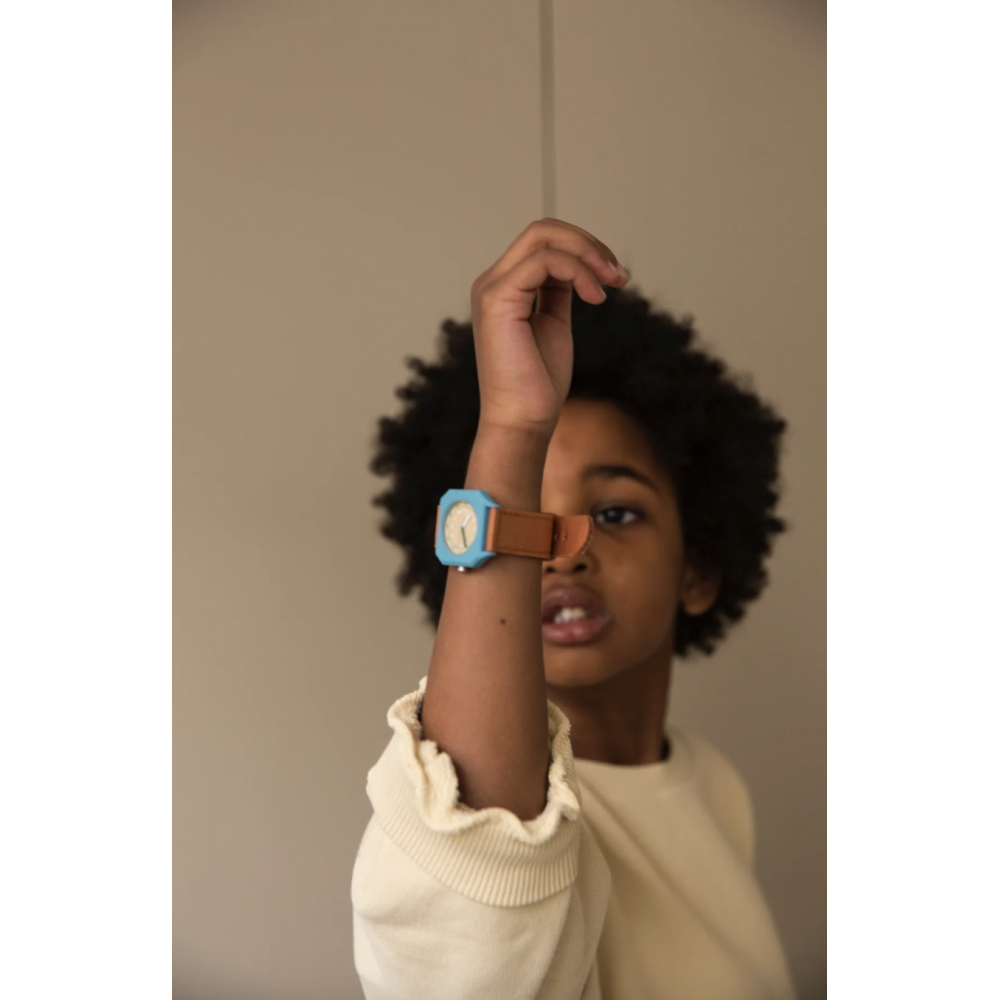 Fun and stylish, the Havana Sky watch has been designed to be the perfect accessory for your child. It is equipped with Japanese movement and a mineral glass. In order to support adventure and play, it is also waterproof. The watch has clearly readable dials with strong color contrast to make learning to read time an easy task. All hours and five-minute steps are written out, the minutes in-between are marked with small dots. Dimensions : case 32mmx 31mm - 5mm thickness / strap 18 mm width.