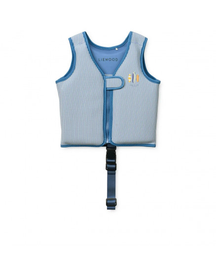 Let eager little swimmers build confidence at their own pace with the family favourite DOVE swim vest. Designed in striped seersucker fabric, it offers gentle buoyancy while allowing mobility to splash and play. The front zip makes it easy to put on, and the safety strap ensures a secure fit. Swim vest with seersucker material with playful stripes and in summery colours The shell is made from 100% soft and quick-drying polyester Light and flexible material allows for full mobility Easy to take on and off with the front zipper Added safety strap for in-between the legs Great swimming aid for gaining confidence in the water Please note that the swim vest should fit snugly around your child's chest to ensure safe buoyancy