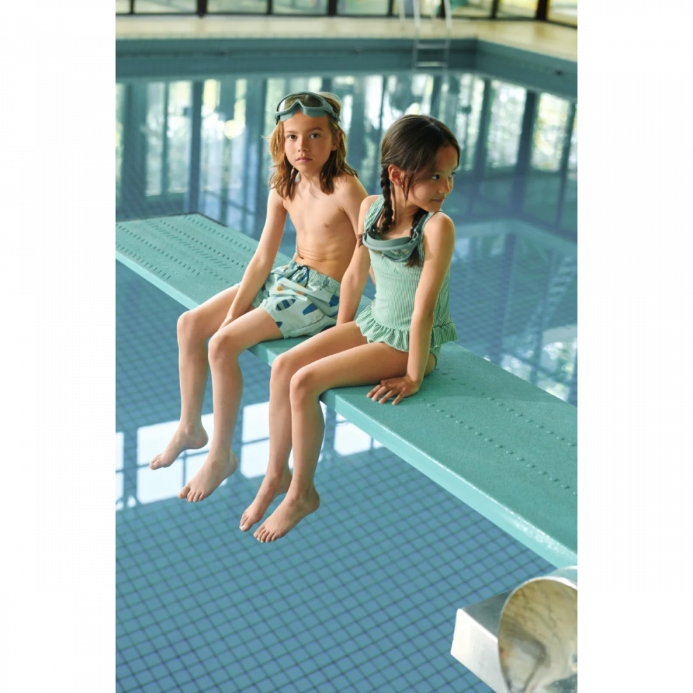 The classic DUKE board shorts are made for long summer days filled with play and adventure. With UV40+ protection, inner mesh trunks, and a soft, quick-drying fabric, they are perfect for everything from splashing in the paddling pool to play sessions in the garden. Classic board shorts with UV40+ protection Made from quick-drying fabric This is made of 100% GRS-certified post-consumer recycled polyester Inner mesh trunks for comfort Elasticated waistband with an adjustable drawstring Comfortable and versatile all-day board shorts for water adventures