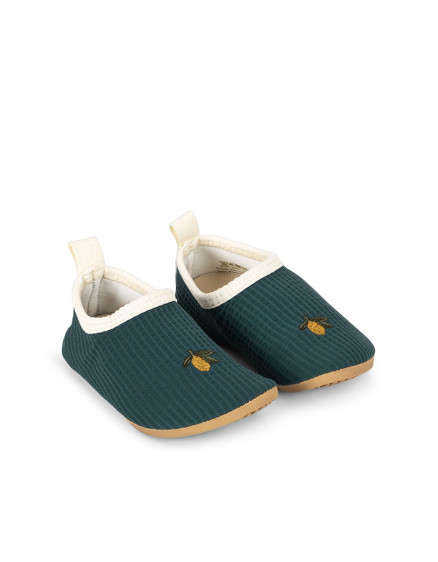 Swim shoes with decorative sailor inspired details. Made in a quick-drying and flexible material that is meant to fit tightly around the foot. Features a non-slip rubber sole for firm footing. Protects little feet against the sun’s UV rays with the highest ultraviolet protection factor, UPF 40+ EN 13758-2. Only covered areas are protected. Protection may decrease with use stretching or when wet. Sun exposure can contribute to skin damage.
