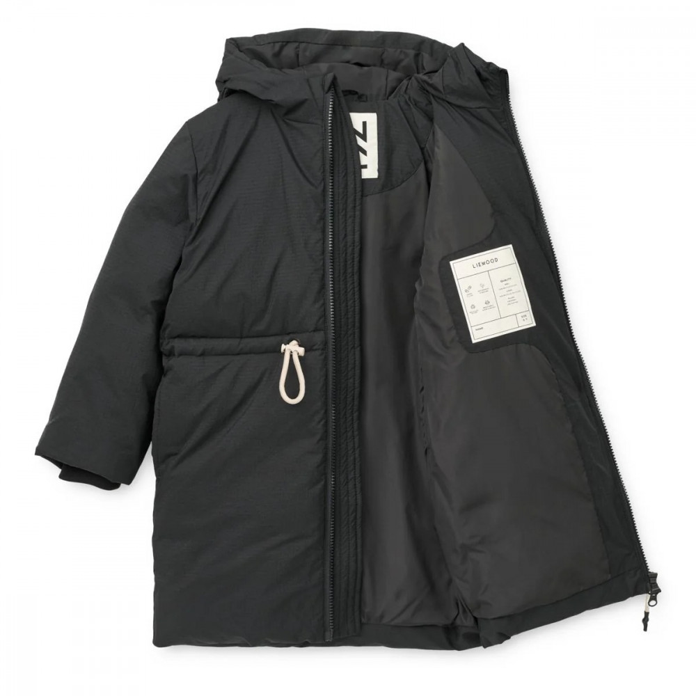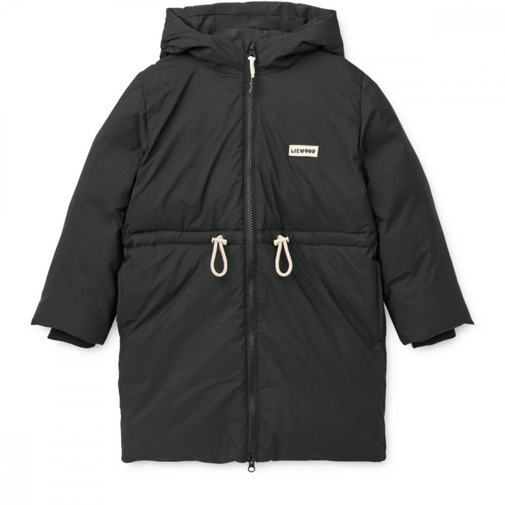 A warm and practical companion, the long BILLE down coat is crafted from recycled ripstop fabric and padded with responsibly sourced down and feathers. Designed for comfort and movement with thoughtful details like fleece-lined pockets, ribbed cuffs, and a waist drawstring, it is perfect for cold-weather adventures. Long down jacket with a two-way zipper Made from recycled ripstop fabric that adds structure to the jacket Padded with RDS-certified, responsibly sourced 50% down and 50% feather Rib cuff inside the sleeves and fleece lining in the pockets Adjustable string at the waist and reflective detail on the back Warm and practical for cold winter days