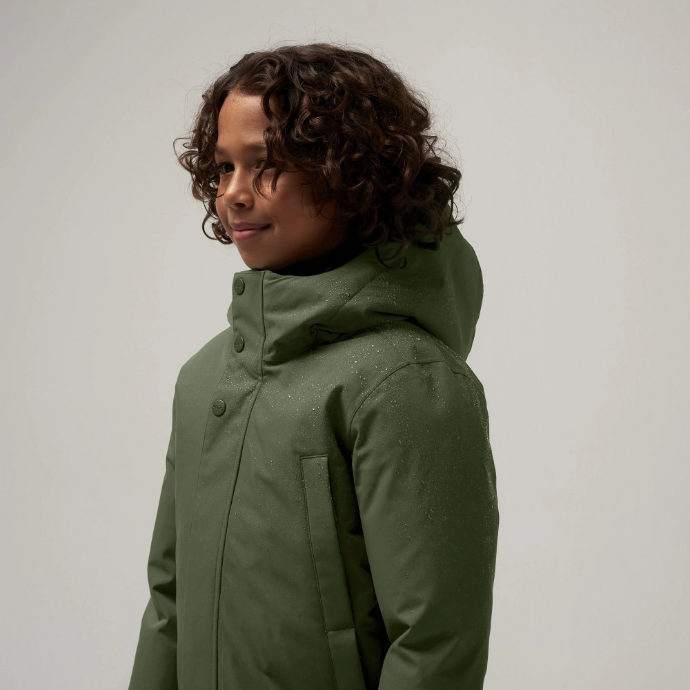 This waterproof jacket falls just over the hip, features double front pockets, a fluffy biodegradable filling and has all the finishes for a bona fide OUTERPROOF. With all seams carefully taped, a waterproof column pressure of 8K and an extra durable water repellent finish CHIPMUNK jacket is not messing around. Waterproof rating: heavy rainfall 8000mm column pressure Taped seams High performance material Dense Micro Twill made out of recycled yarn DWR Bionic finish® Eco; the deep water-repellent component used is based on a fluorine free recipe Reflective safety strip in the small pocket at back of garment All our garments are BPA + AZO free and certified with all child safety regulations No animals are used for these products