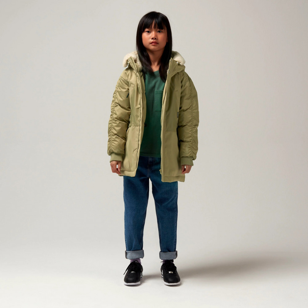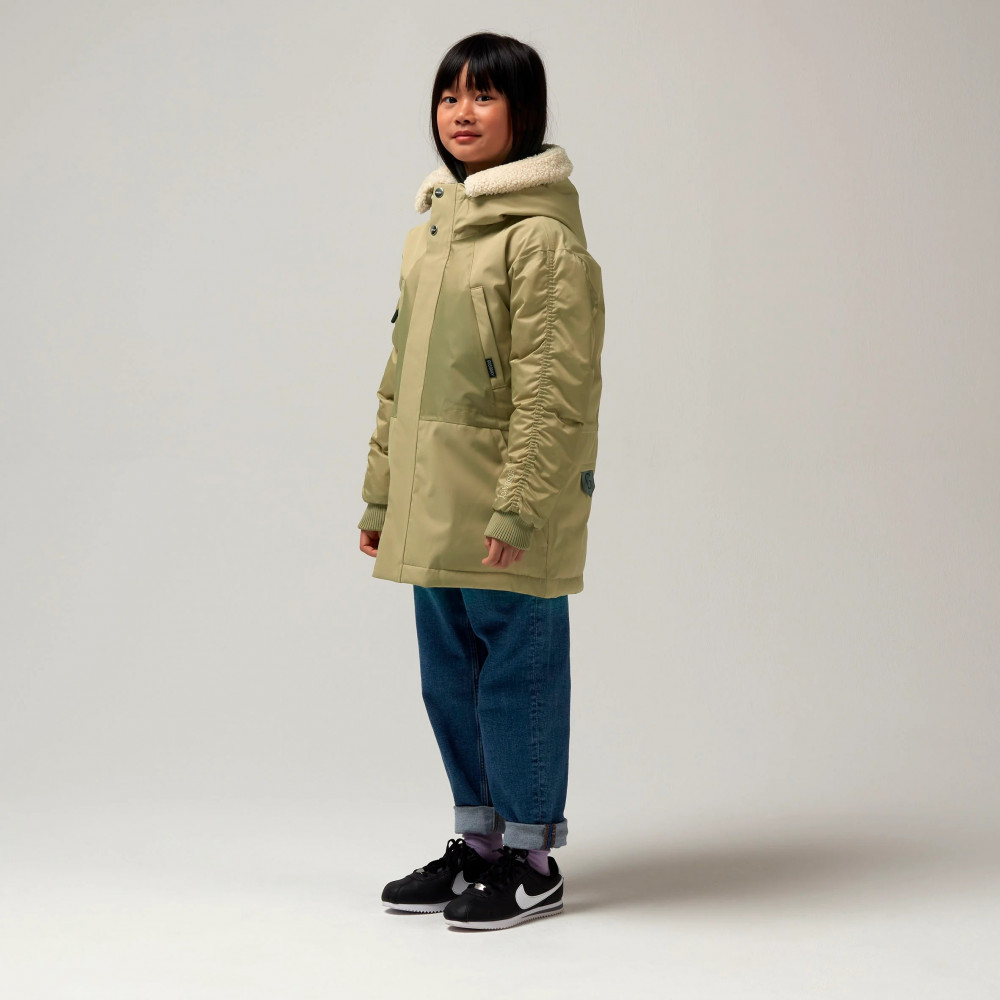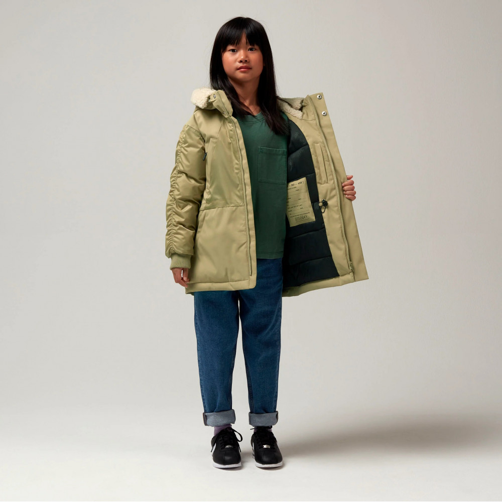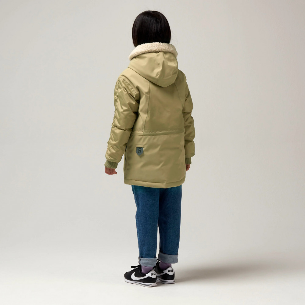 With the FUNNY FROG, your child will be giggling their way through all weather conditions! This funny little guy has a removable faux fur trim to add some extra warmth around the face. The waterproof satin panels and smocked sleeves add and interesting and cool look to the jacket. Waterproof rating: heavy rainfall 8000mm column pressure Taped seams High performance material Dense Micro Twill and Heavy Sateen Recycled yarn for the Dense Micro Twill DWR Bionic finish® Eco; the deep water-repellent component used is based on a fluorine free recipe Reflective safety strip in the small pocket at back of garment All our garments are BPA + AZO free and certified with all child safety regulations No animals are used for these products.
