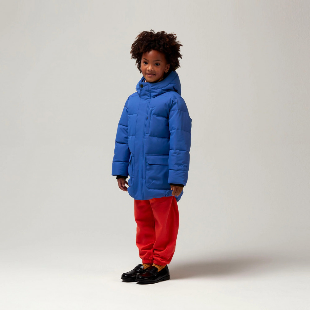 TIGER EYE is the epitome of the perfect puffer coat. Carefully designed to keep your kids warm and covered throughout the winter tides. The great attention to technical detail, in combination with a classic cut, makes this a true wardrobe staple. Waterproof rating: heavy rainfall 8000mm column pressure Taped seams High performance material Dense Micro Twill made out of recycled yarn. DWR Bionic finish® Eco; this deep water-repellent finish is based on a fluorine free recipe Reflective safety strip in the small pocket at back of garment All our garments are BPA + AZO free and certified with all child safety regulations