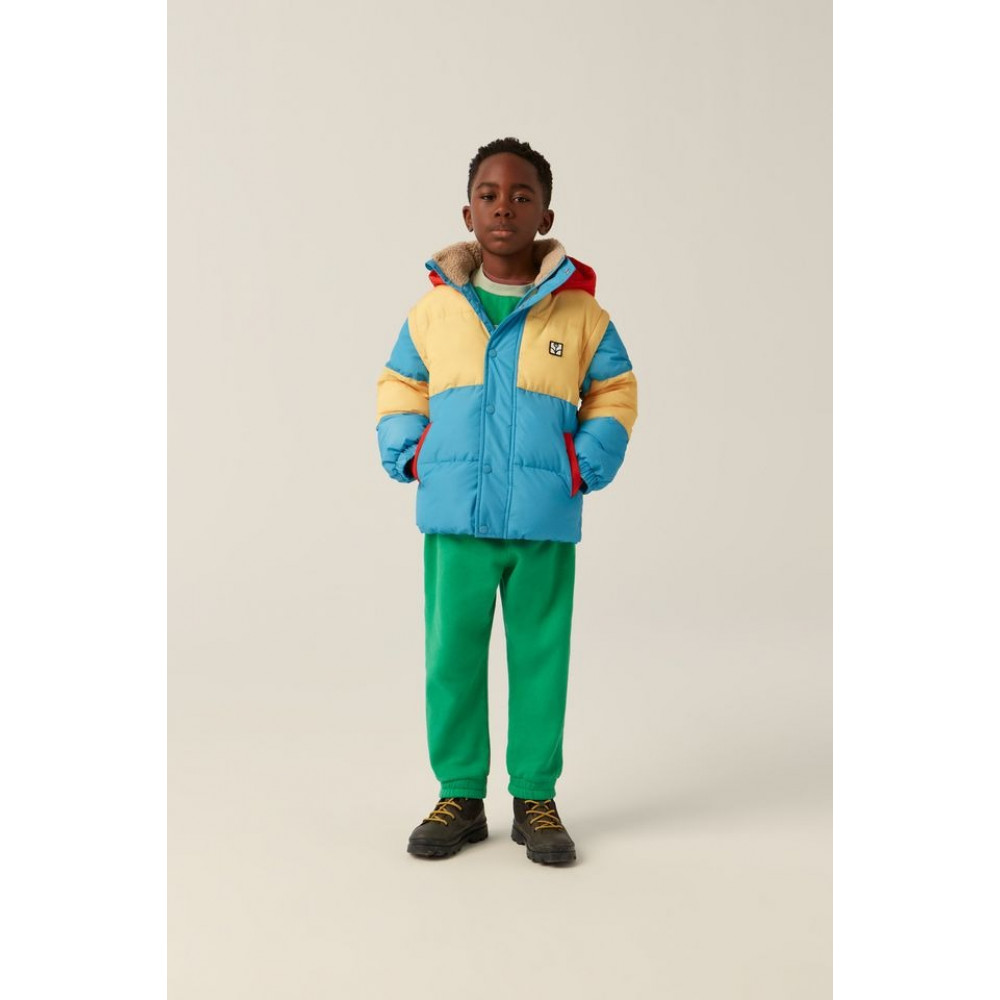 This color block puffer jacket is the perfect garment to complete any winter outfit. It has polar fleece inside for more comfort. You can also remove the sleeves and wear it a vest. Long sleeves, front zip fastening, elasticated bottom, elasticated cuffs, heavy padded and patch pocket. It has a loose fit. Water resistant with 3000mmmwater columns Breathable with 3000g/m2/24h Windproof