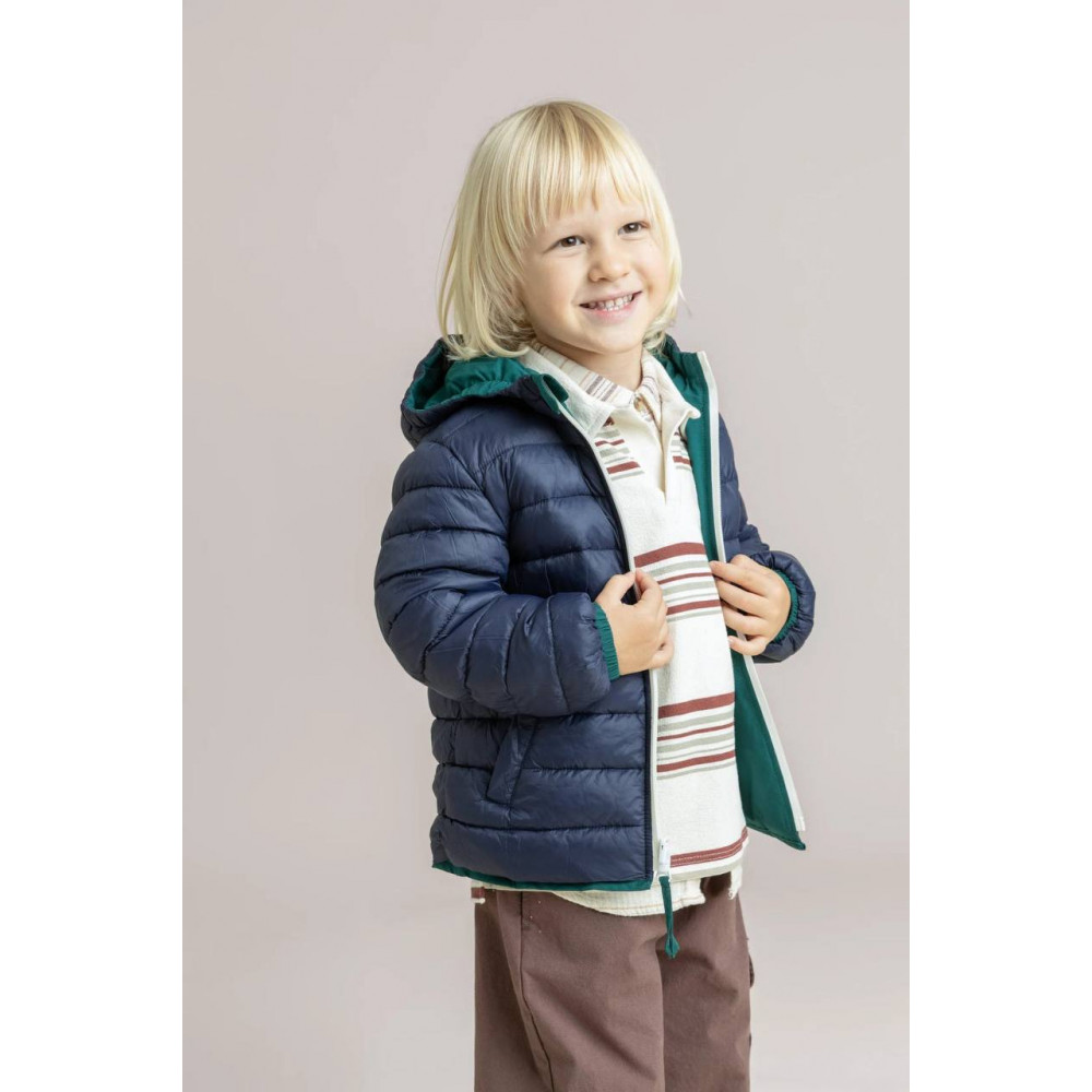 Reversible and ultra-practical, the Chaligny down jacket accompanies little adventurers in style! Made from recycled polyester fabric and padded with plant-based down, it keeps your children nice and warm. Practical zippered pockets protect their belongings, freeing up their hands for more adventures. The added bonus? Your child can choose their color of the day by turning it inside out!