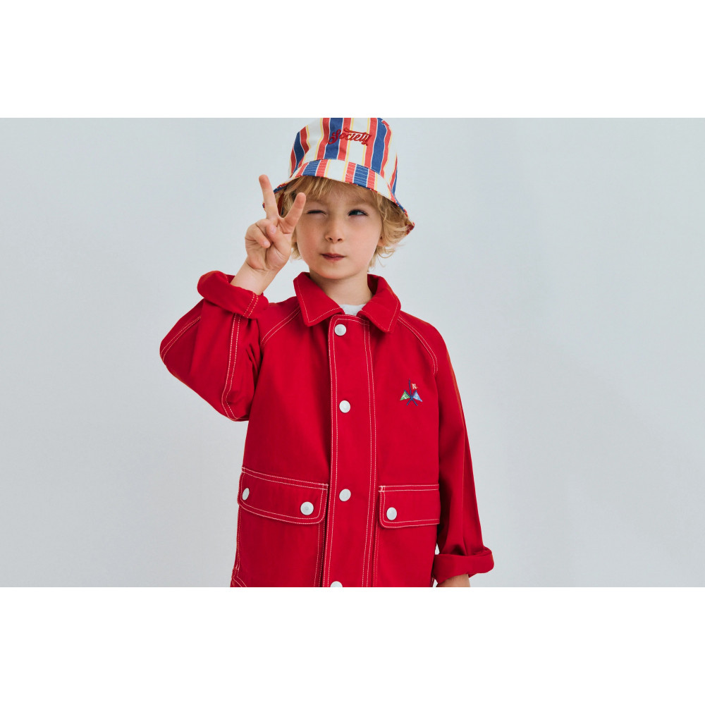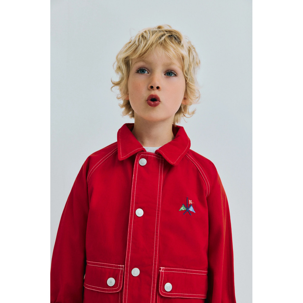 Durable canvas jacket featuring stitched pocket details and a soft corduroy collar. Finished with a branded flag patch on the chest and contrasting topstitching for a distinctive, original look. Made in Portugal