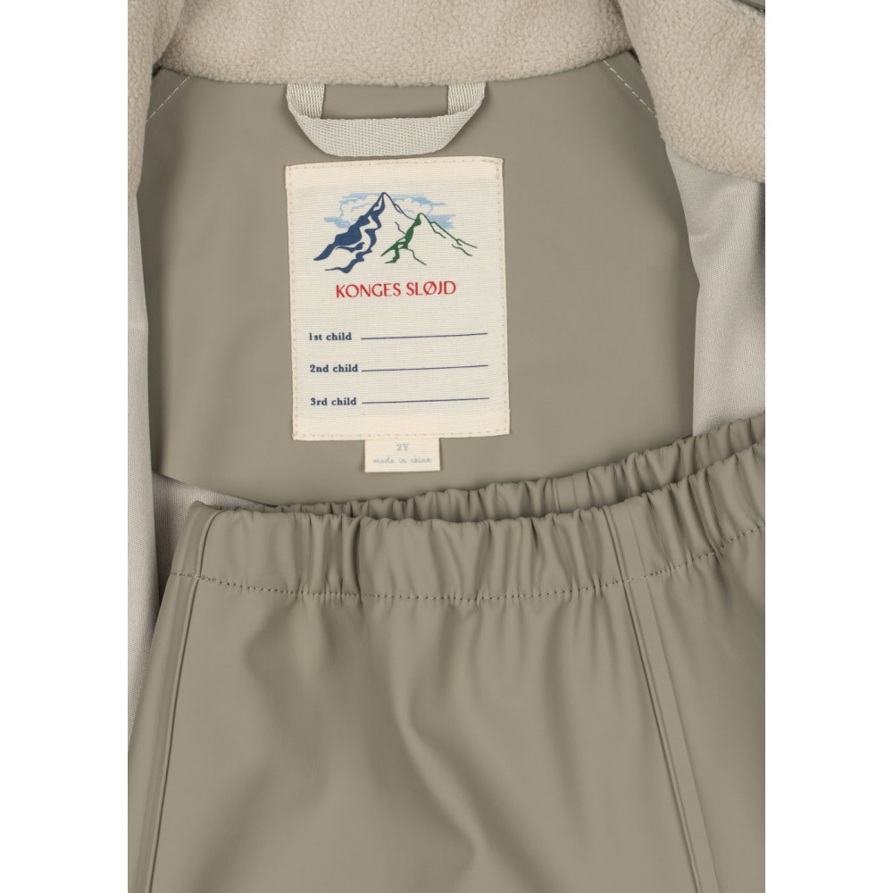 Our Plainy rain set is an everyday favorite in a lightweight quality that is ideal for kindergarten, daycare, and school. Easy and practical to keep in the wardrobe as a backup for whatever weather the day might bring. Wind-resistant and waterproof with a detachable hood. Designed with elastic cuffs at hands and ankles to make sure the rain set stays firmly in place and fits over boots and gloves. Technical details: - Waterproof: 10.000 mm - Taped seams - Wind-resistant