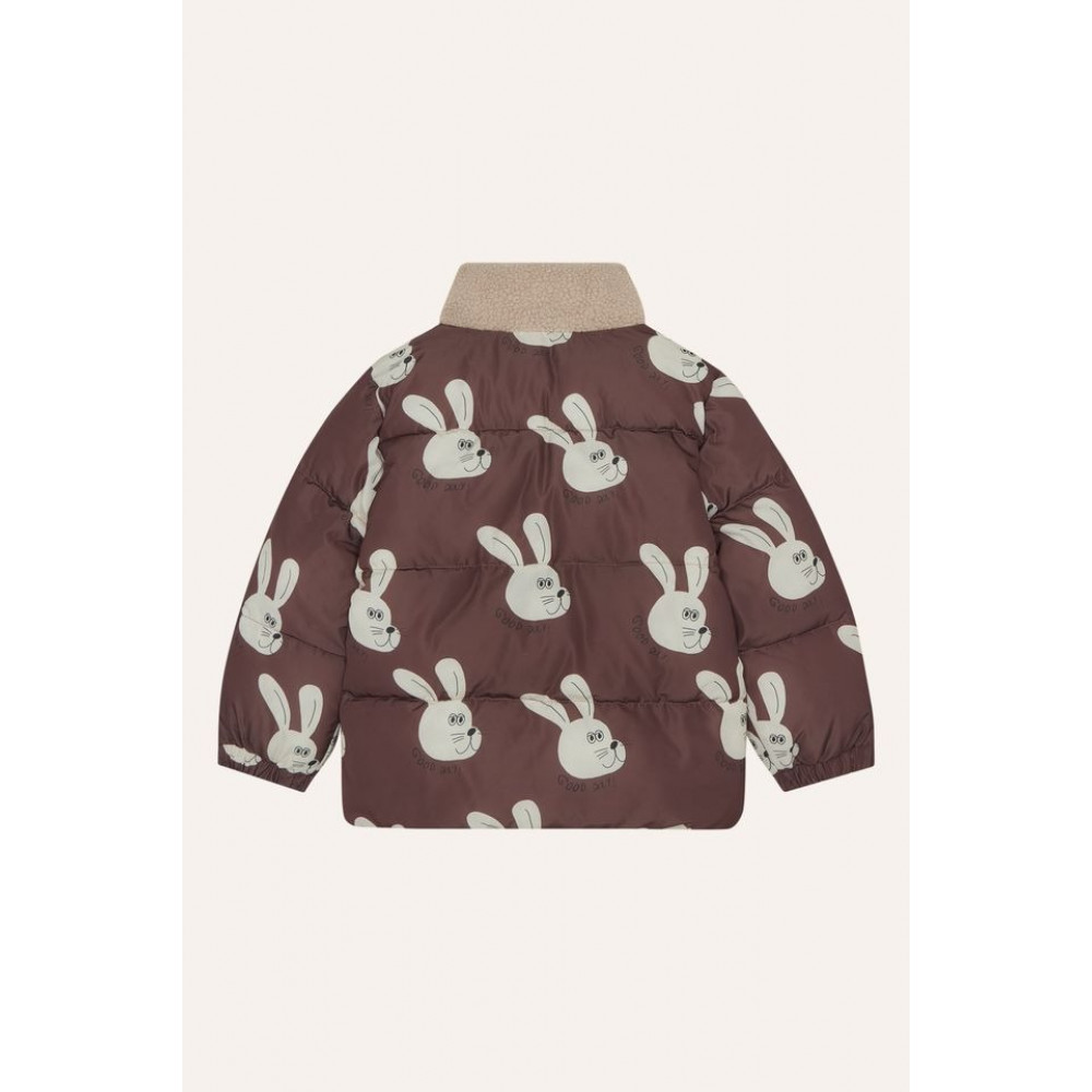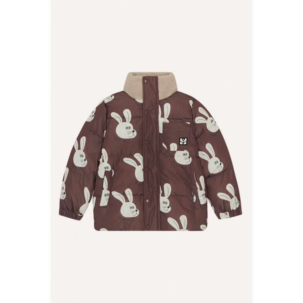 This puffer jacket is the perfect garment to wear all winter. With happy rabbits printed all over it to give a funny touch to your outfit. It has polar fleece inside for more comfort. Long sleeves, front zip fastening, elasticated bottom, elasticated cuffs, heavy padded and patch pocket. It has a loose fit. Water resistant with 3000mmmwater columns Breathable with 3000g/m2/24h Windproof