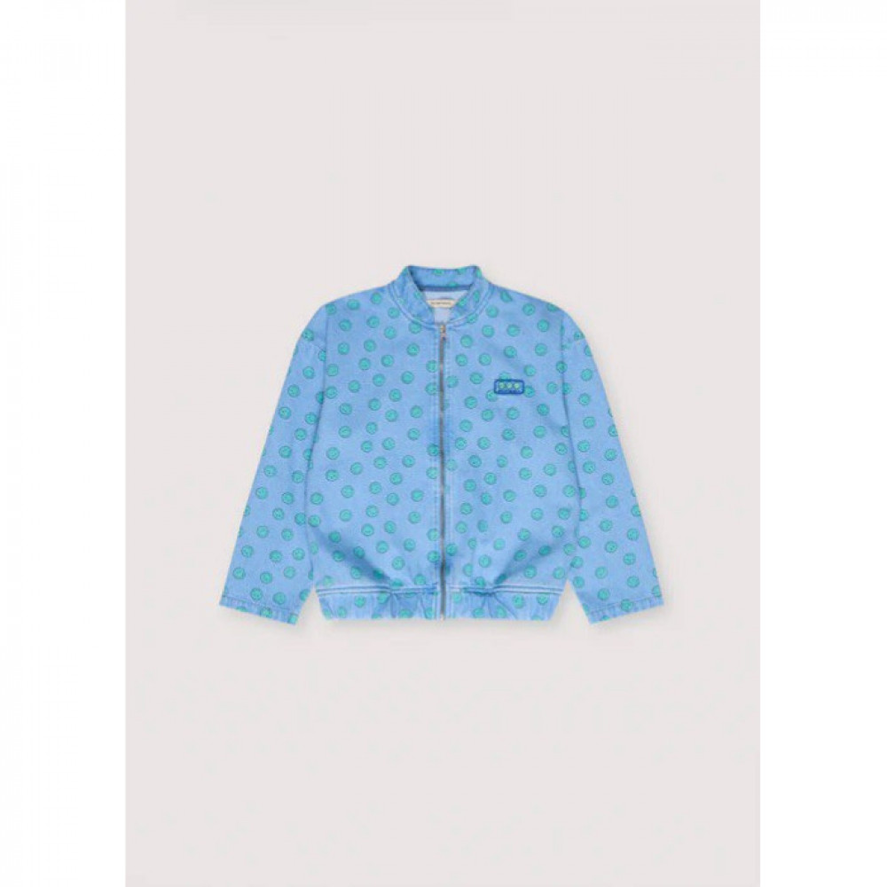 Denim bomber jacket featuring a fun contrasting SmileyWorld® print and an embroidered patch detail on the chest. Designed with side pockets for added functionality, this jacket combines style and comfort. The jade smiley faces are carefully printed onto the denim through a meticulous process, making each piece unique. Please note that due to this process, no two jackets are exactly the same, adding a special touch to every one. This bomber jacket pairs perfectly with the matching SmileyWorld® denim trousers and bucket hat for a coordinated, standout look. Color Collection: Light blue Made in Portugal
