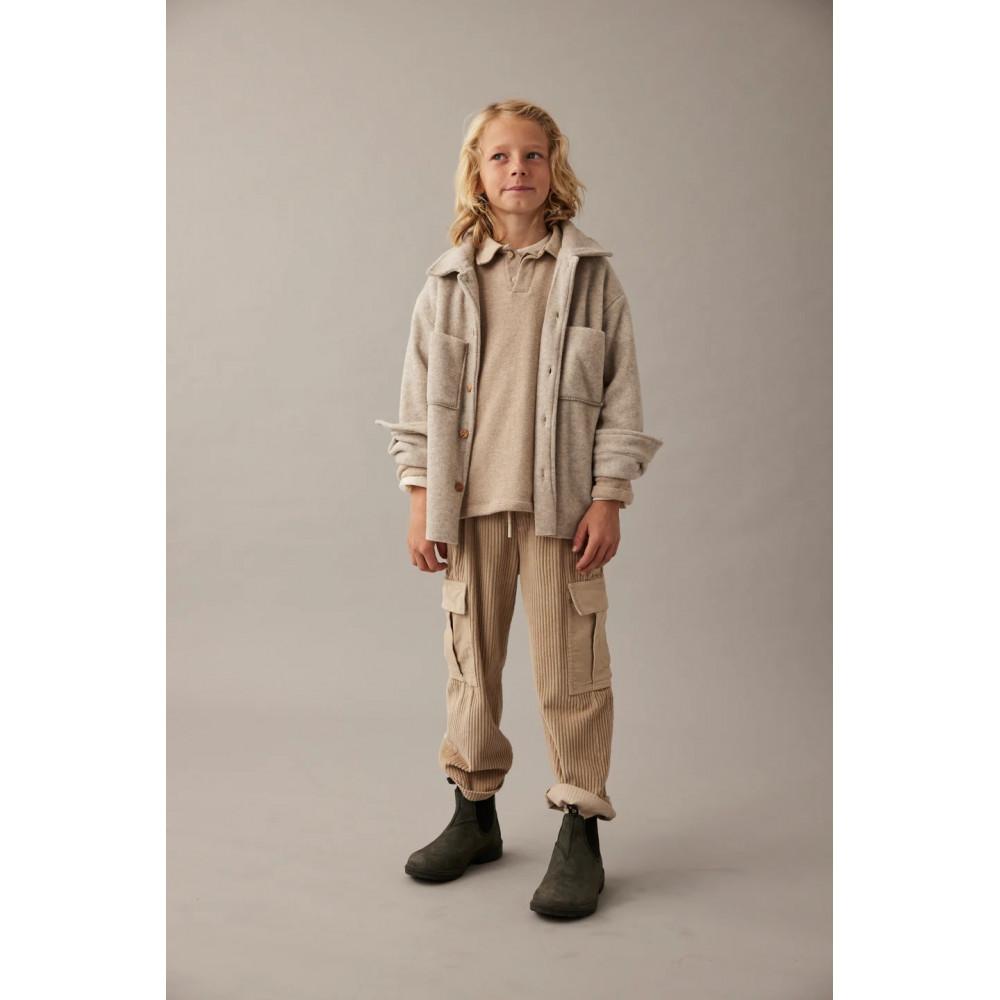 Shirt jacket crafted from tender bamboo fabric with a subtle mélange effect. It features a classic collar, button-down front closure, and patch pockets with detailed stitching on the chest. Buttoned cuffs and a back yoke complete the design. Soft, breathable, and gentle on the skin. It is part of Cozmo’s bamboo kids clothing collection. Made from bamboo fabric with an exceptionally soft, inviting feel. Naturally breathable and gentle on delicate skin. Eco-friendly choice with sustainable bamboo fibers. Lightweight yet durable, perfect for everyday wear.
