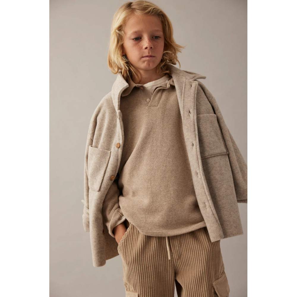 Shirt jacket crafted from tender bamboo fabric with a subtle mélange effect. It features a classic collar, button-down front closure, and patch pockets with detailed stitching on the chest. Buttoned cuffs and a back yoke complete the design. Soft, breathable, and gentle on the skin. It is part of Cozmo’s bamboo kids clothing collection. Made from bamboo fabric with an exceptionally soft, inviting feel. Naturally breathable and gentle on delicate skin. Eco-friendly choice with sustainable bamboo fibers. Lightweight yet durable, perfect for everyday wear.