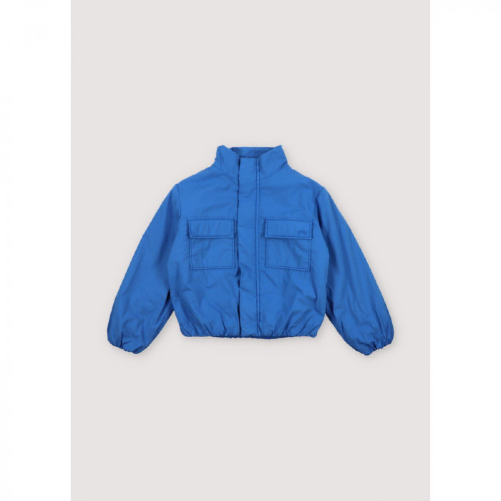 Bright, cobalt-colored jacket with a snake print. Large pockets and a stand-up collar - the perfect combination for the cool off-season.