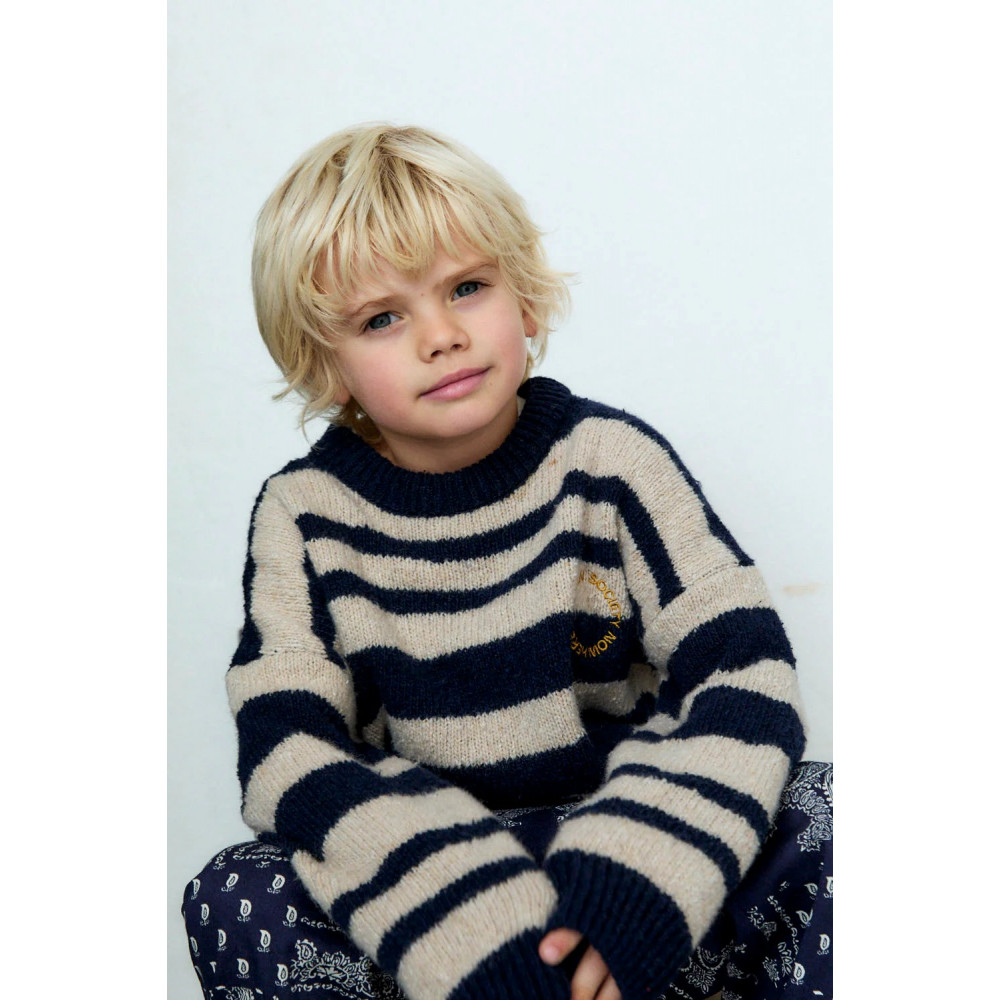 A fresh take on our classic striped pattern, this sweater features bold two-tone colors and a touch of contrast with distinctive embroidery on the chest. Soft, comfortable, and easy to pair, it’s a staple piece with a subtle statement.