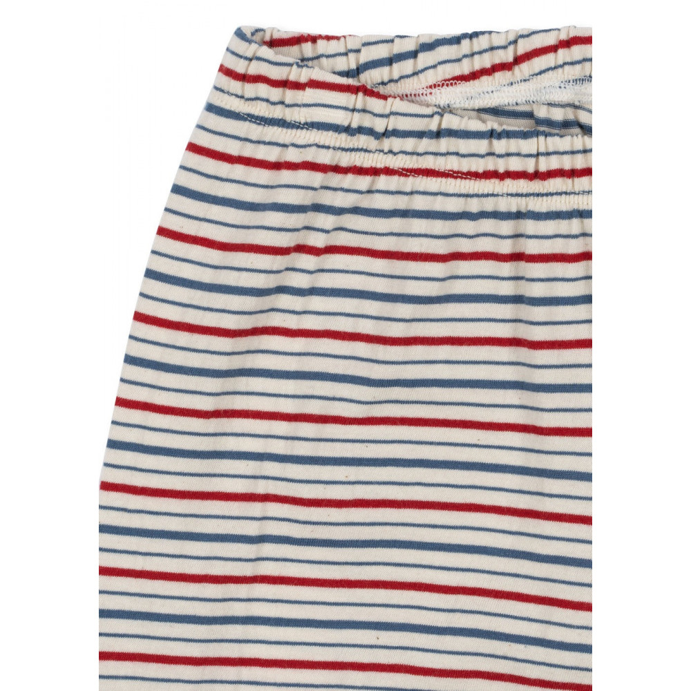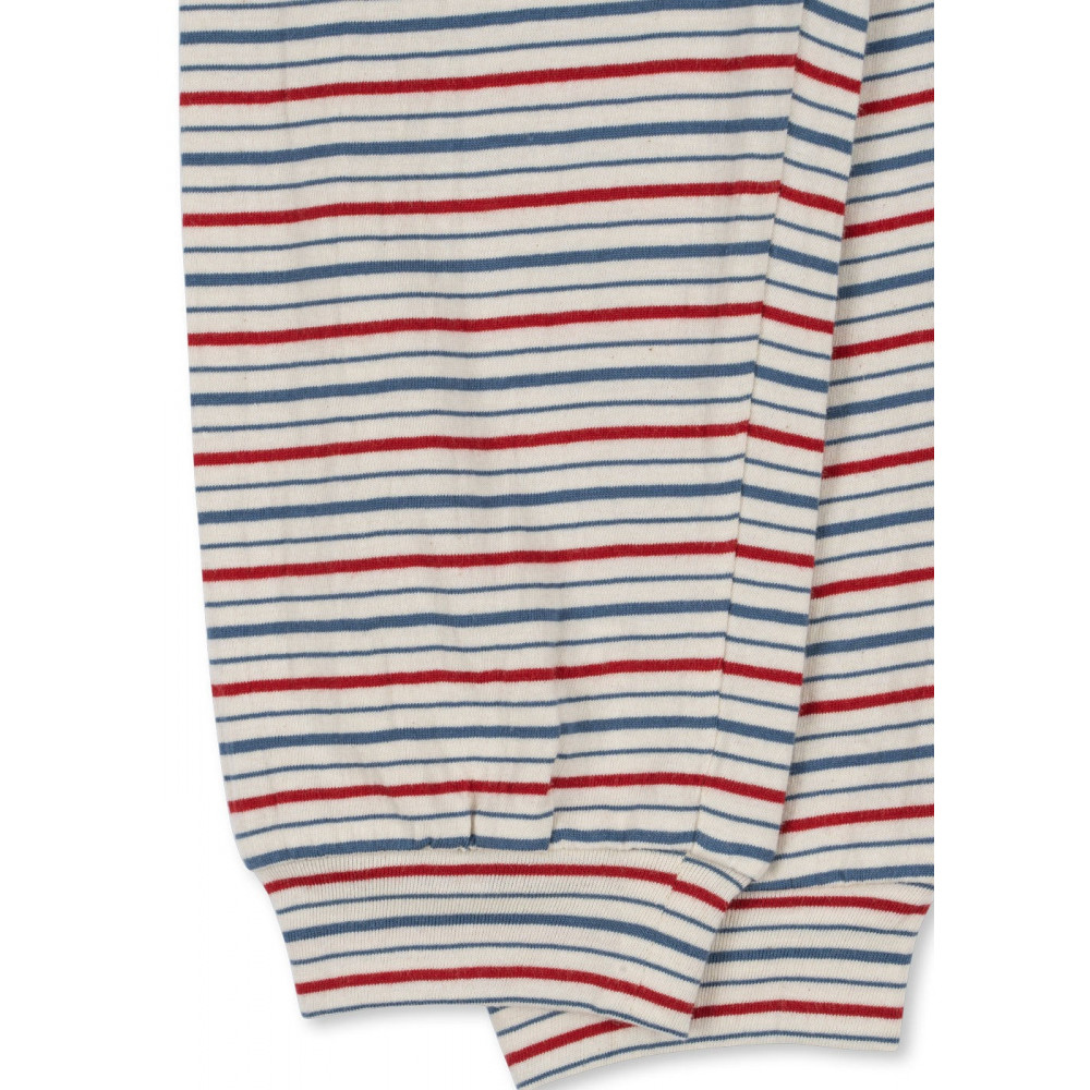 Soft two-piece set featuring a long-sleeved tee and pants with elastic waist. Made of 100% organic cotton Please note: Smaller sizes, from 3-18 months, feature press buttons on the left shoulder for easy dressing. Sizes 2 years and up feature a regular round neck with rib detailing.