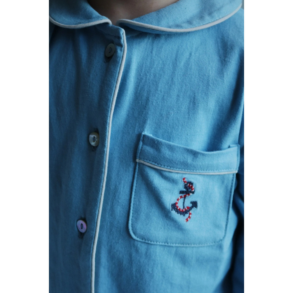 Soft jersey set made for slow and comfy days at home. The set includes a classic pyjama shirt and soft pants with elastic waist.