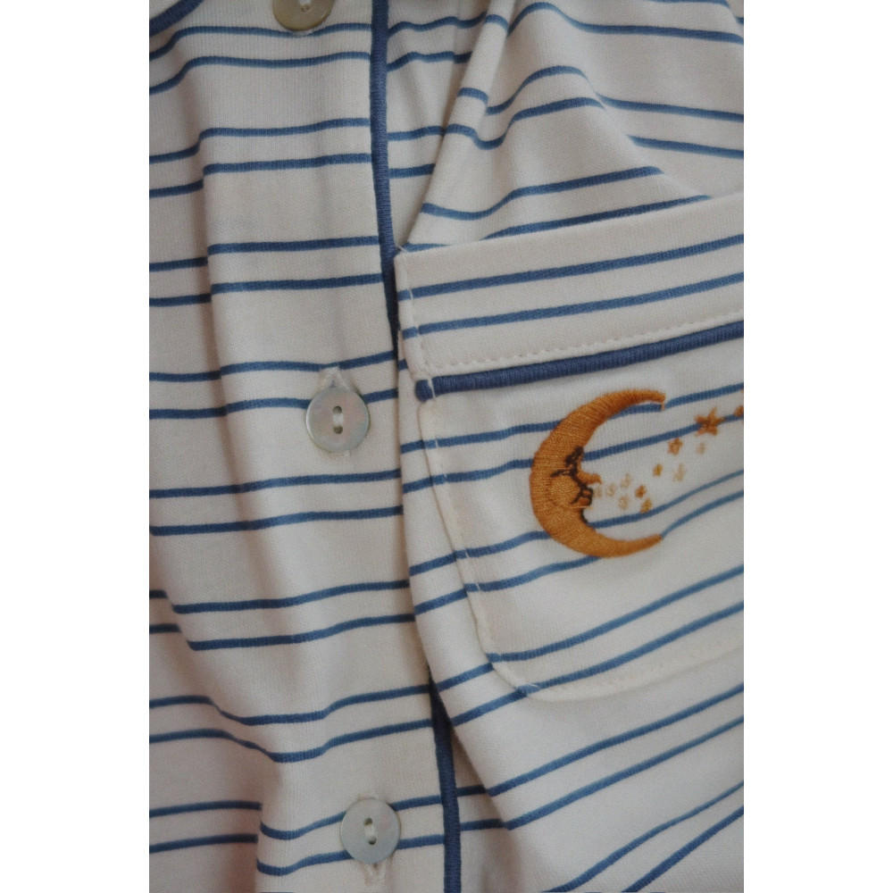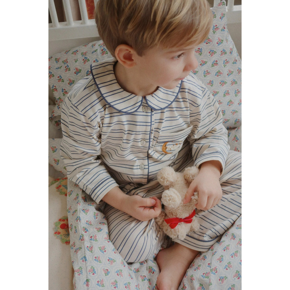 Soft jersey set made for slow and comfy days at home. The set includes a classic pyjama shirt and soft pants with an elastic waist. Made from 100% organic cotton